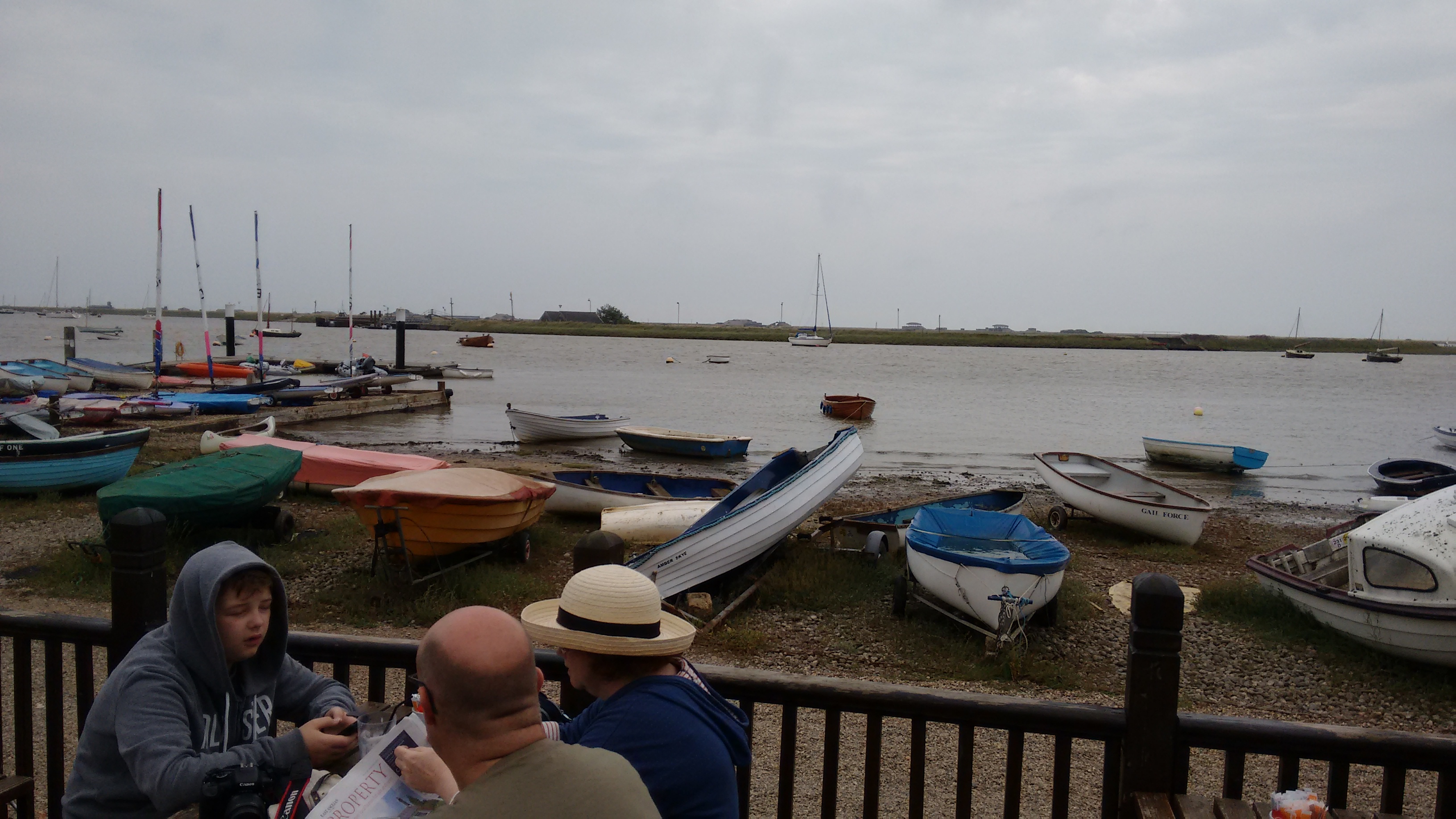 Click on the heading to open the map and see the detail of this interesting route. Starting at The Fox Inn in Newbourne near Ipswich, Maurice led Andrew, Ken, John T and Martin on a 43 mile ride via Felixstowe Ferry to Bawdsey and then to Orford in a strong head wind. Stopping for coffee, cake and cockles at the quayside we then cruised back at high speed to Woodbridge where we saw the tide mill and marina, followed by lunch at The Fox Inn and a welcome pint of Adnam’s Southwold bitter. Thanks, Maurice, for organising a great ride in a location which missed all the storms elsewhere.