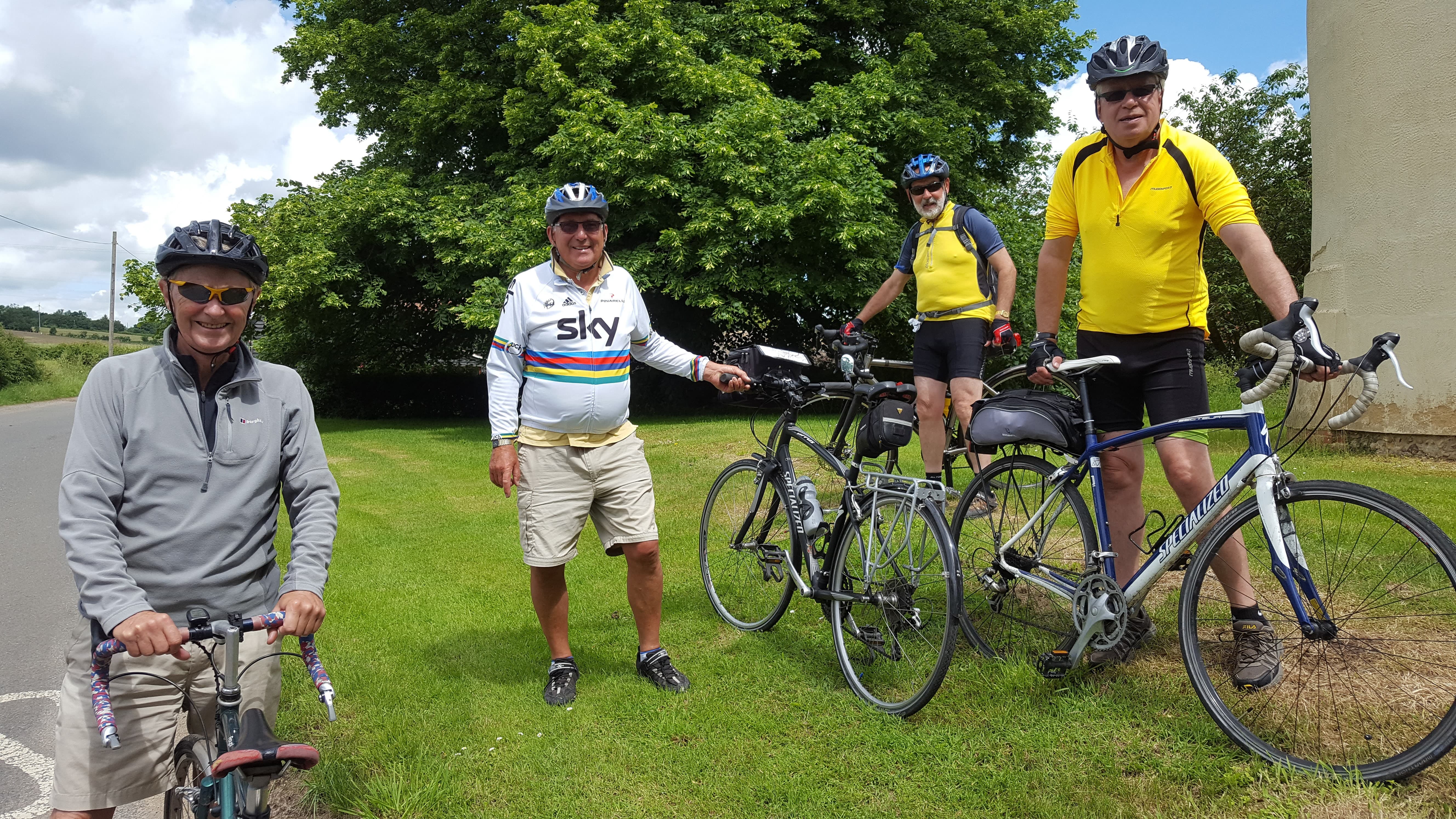 At this point, Rick, having already cycled an additional 20 miles to join us at the start, peeled off homewards while the rest of us continued on through Maplestead, Pebmarsh, Lamarsh, Henny Street (where we thoughtfully made it up to John by stopping for a quick one at The Swan), Middleton, Gestingthorpe and the Yeldhams, before heading back to Steeple Bumpstead for the Fox & Hound’s special combo of black pudding, bacon, asparagus & poached egg. A couple of beers later we were debating Brexit with the locals while the rain fell like stair rods outside. Ah, the English summer!