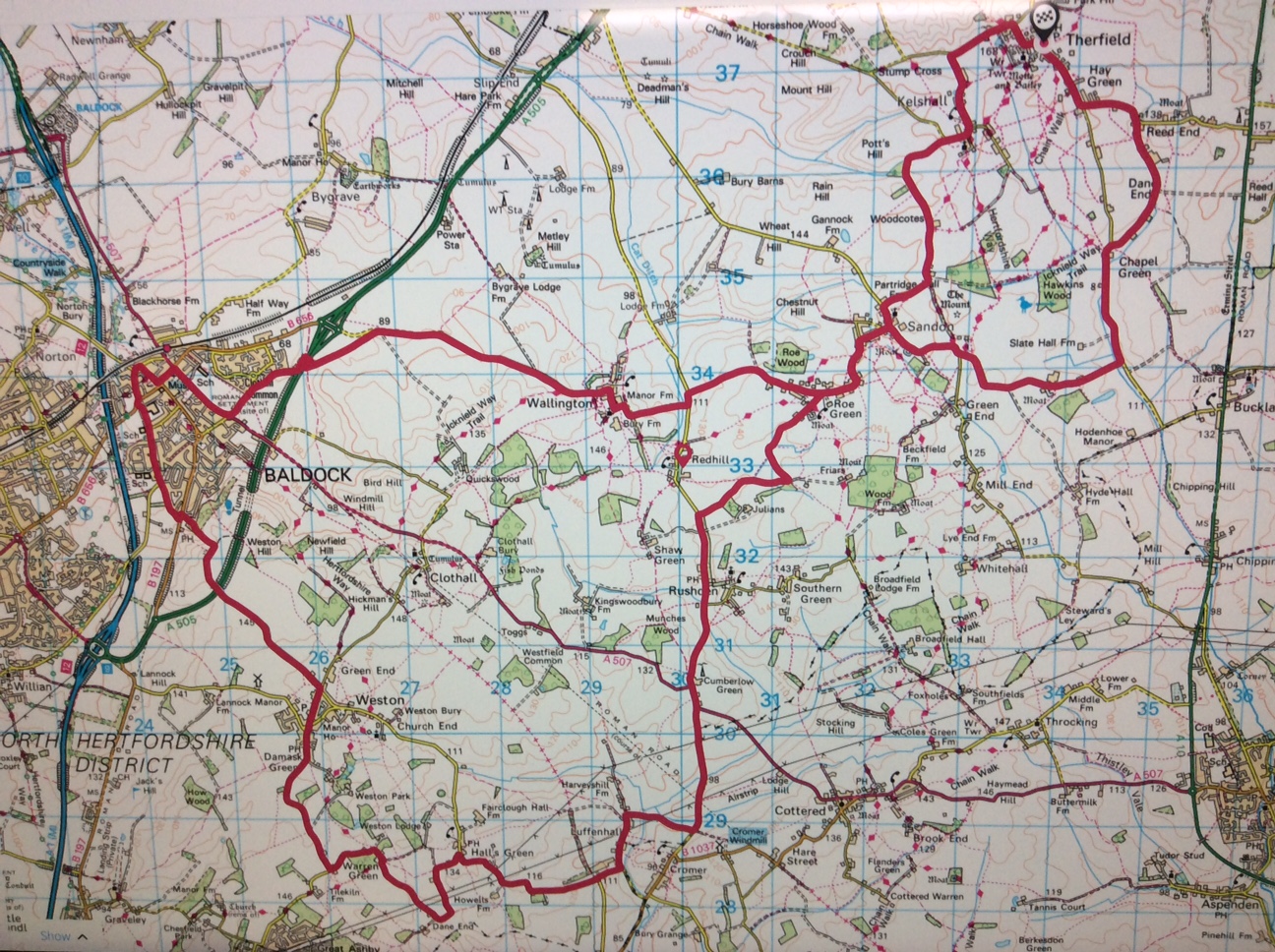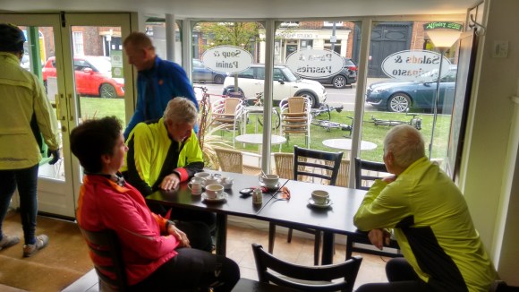 Mrs Puddle-Duck was followed initially by her little offspring including Johns B, T and M, Rod, Vernon, Chris and Martin. The lanes were unfamiliar to some and so it was easy for Vernon, powering ahead of the raft into a head wind, not to hear the U-turn squawk from Chris at a remote junction near Cromer. John M went searching for him, others went on ahead and some just waited patiently which proved to be the best tactic as the lost little duckling appeared having clocked up a few extra miles. Those who went on ahead were naughty and failed to wait at John B’s suggested junction and so found their way to Baldock a shorter way than planned, and then chose a different coffee shop too. When Mrs Puddle-Duck found out she threatened to scold them soundly but, as she’s such a nice Mummy duck, she let them off with a warning.