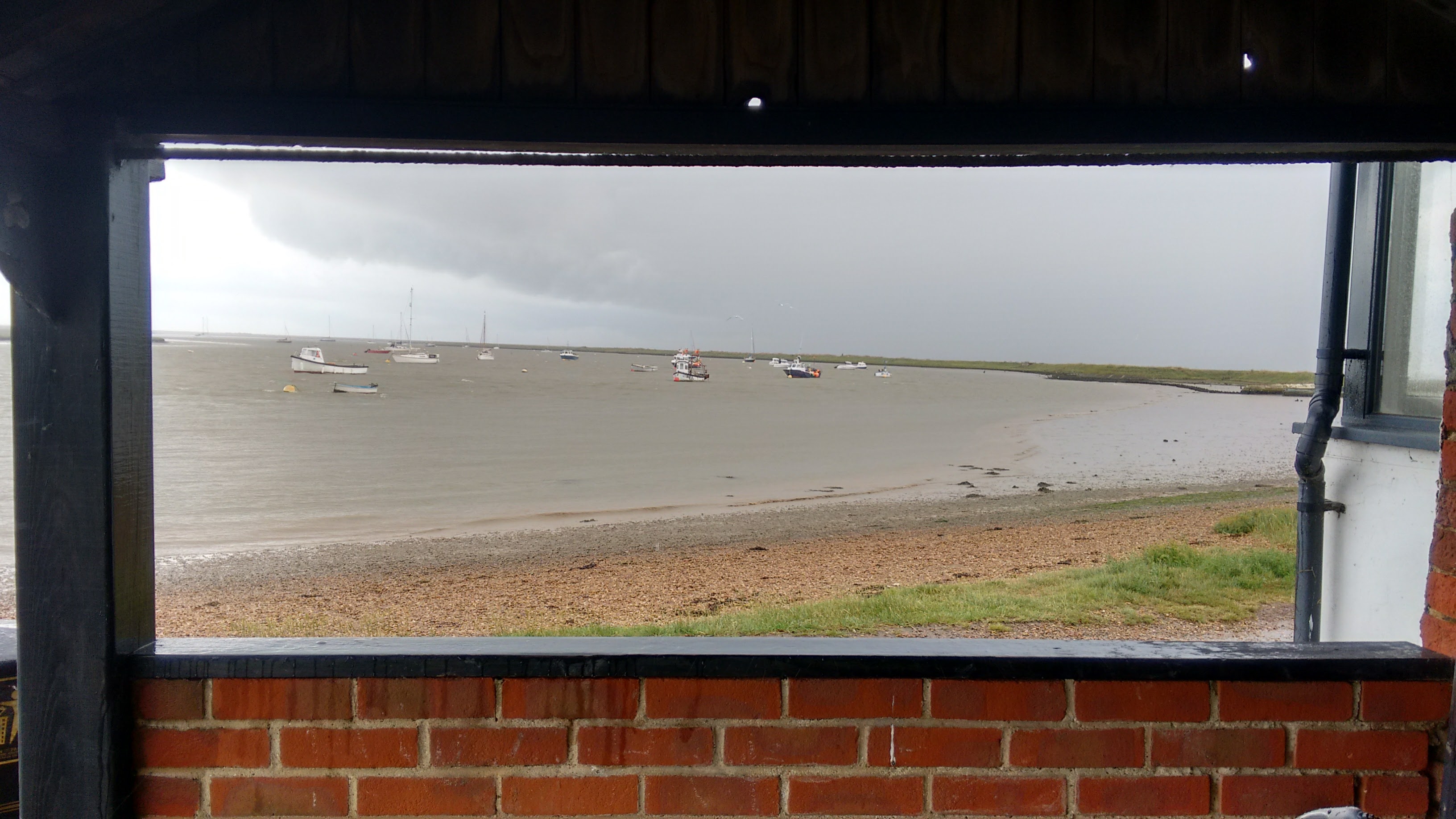 We planned to meet friends of Maurice, and neighbours of John B, over a coffee in Orford and then head back to Newbourne for a late lunch but black clouds soon put paid to that idea. So a trip to the quayside lasted 20 minutes for some whilst waiting for the rain to stop but eventually we all gathered at The Kings Head with Maurice’s friends and had an excellent lunch. Thanks go to Sandra for birthday drinks, a few days ahead of time!