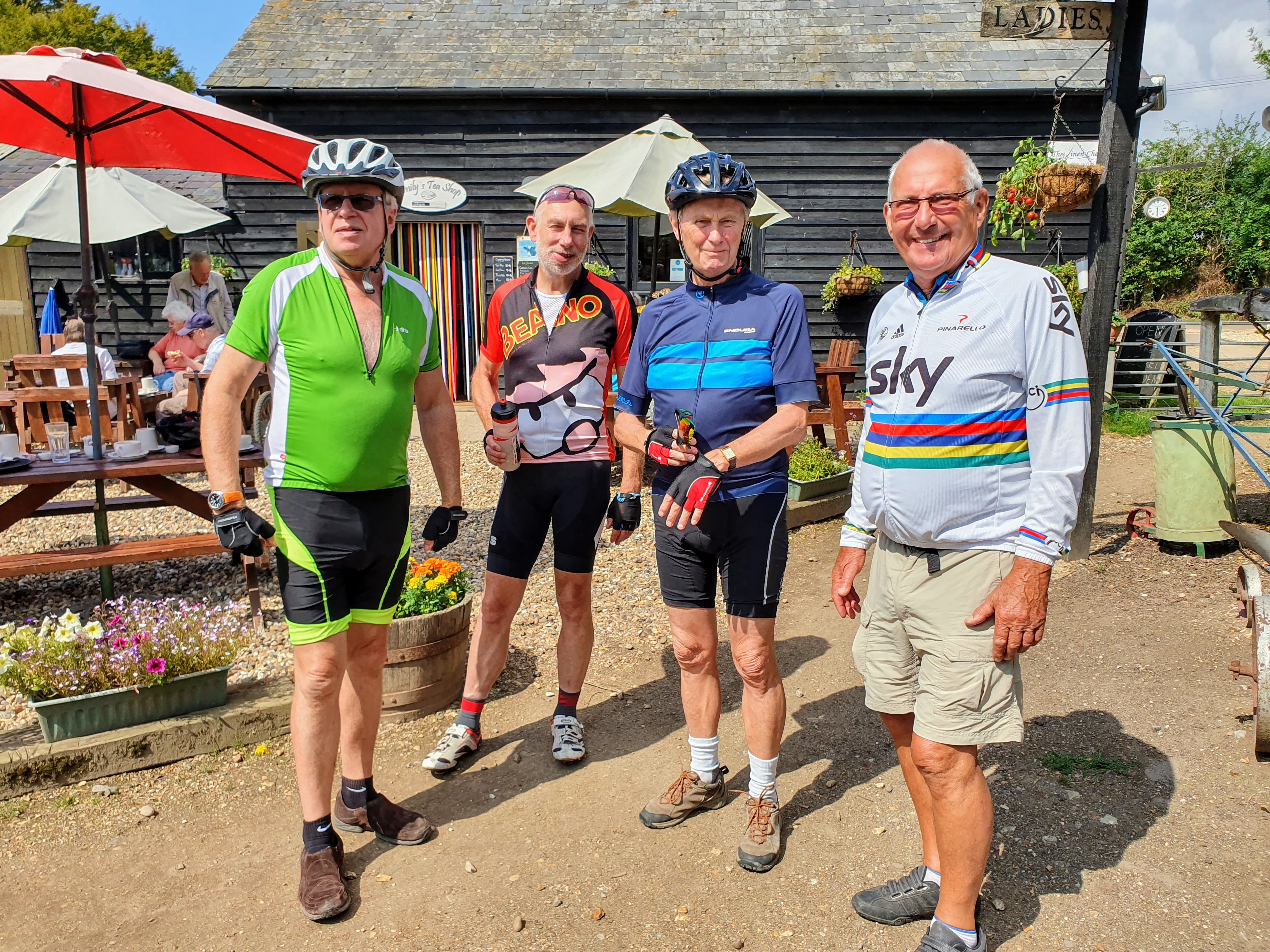 Our next stop was for refreshment at Emily’s Tea Shop in Whitwell. A favourite with local cyclists, the North Herts Club were there in force. Decked out in matching blue livery they made us Windmillers look rather dowdy in comparison.