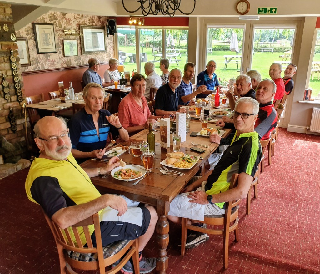 Back on the bikes, we made short work of the return leg to Weston and Halls Green where John and Vernon joined us at the pub for a welcome beer and a good lunch.