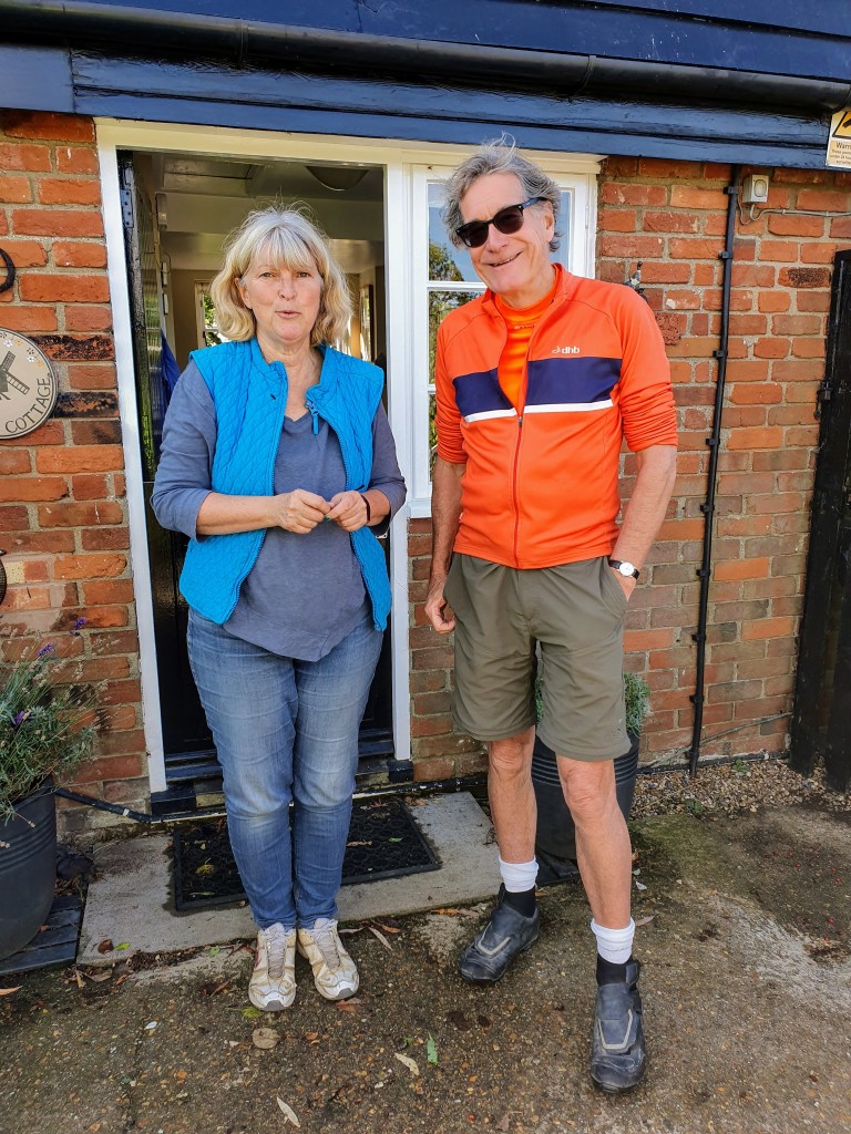 Afterwards Kate invited us into her garden where we enjoyed tea, coffee and some wonderful home-baked treats. Delightful as it was, we had another 17 miles to go and so, thanking Kate, Derek and Claire for their hospitality, we saddled up and set off on the return leg.