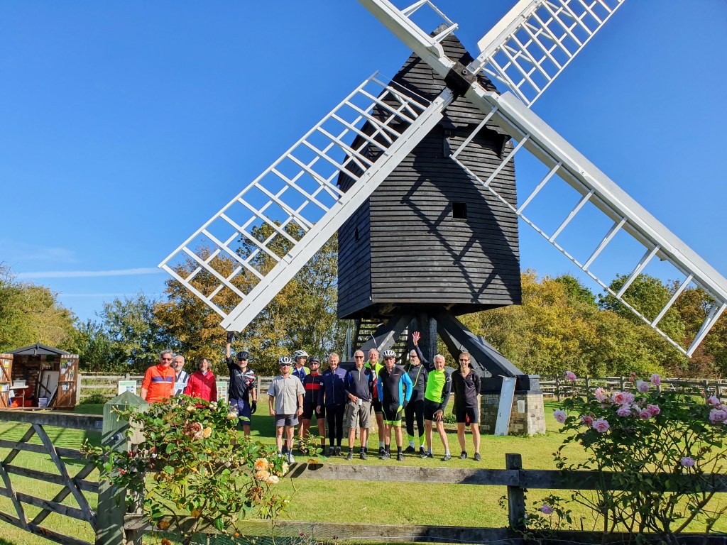 Setting out from Abington Pigotts earlier that morning, Martin had led the way – via Hatley St George and the Gransdens – to Bourn where he had arranged a tour of the mill. Our host Kate plus volunteers Derek and Claire were expecting us and gave a warm welcome.