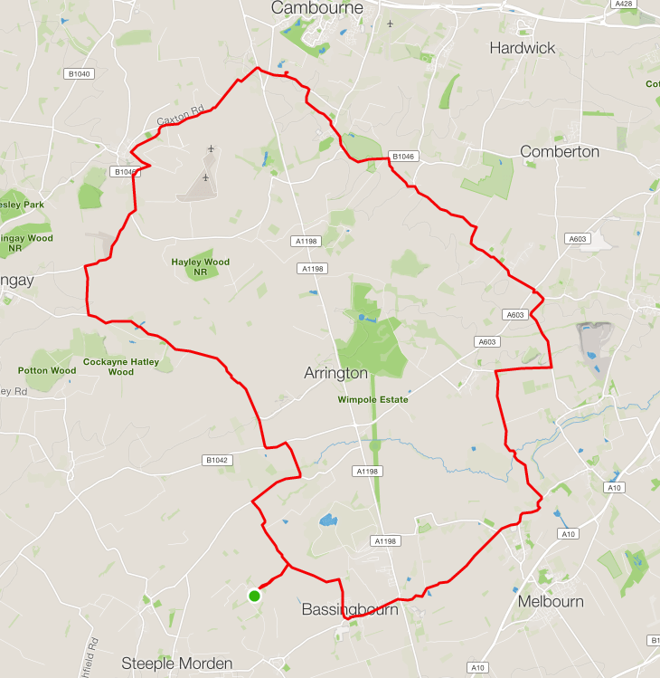 Approaching Harlton, Martin led us off road and up hill on a rough track for a mile or so before before descending towards Orwell. Then it was on to Meldreth, Bassingbourn and eventually the home straight back to the Pig and Abbot.
