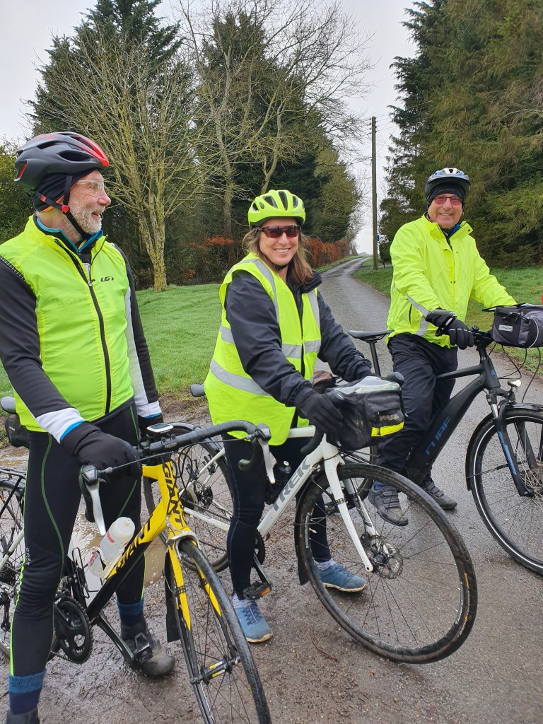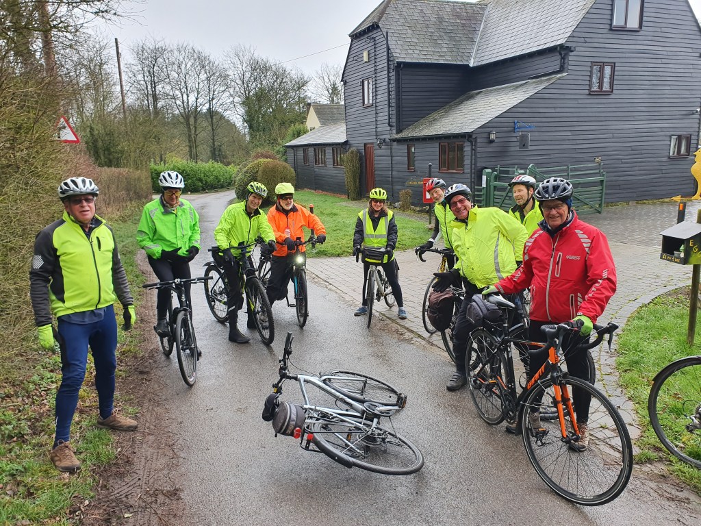 Maurice led the way out of the pub car park followed by Geoff, Graham, Deborah, Ken, Howard, Andrew, Victor, Rod and Brian. For once, everyone had mudguards, even Deborah; she no longer needs to be hosed down on arriving home on Thursdays.