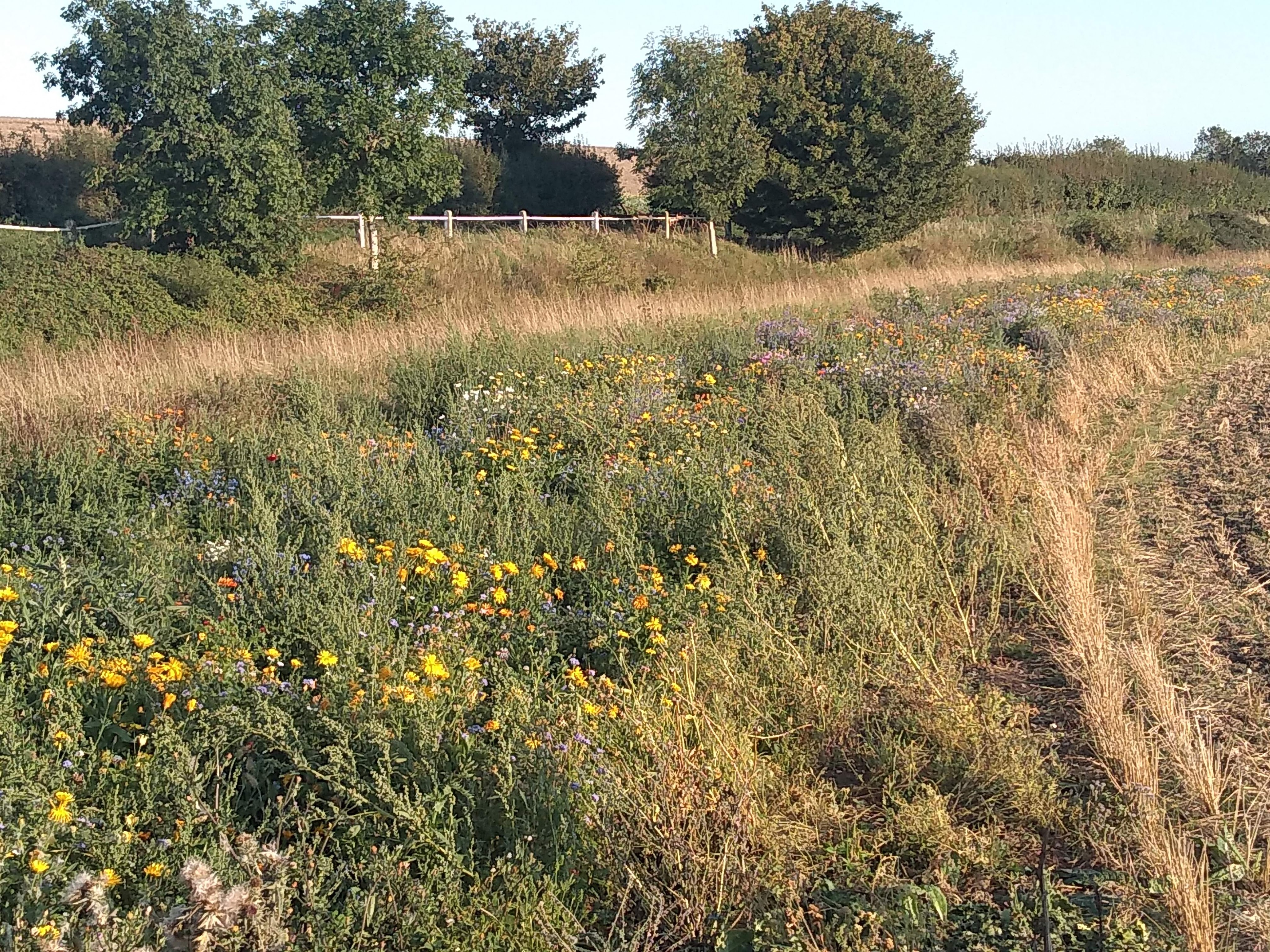 Valentines’ Day is a long way off but Deborah and Martin looked like they were getting romantic on this lovely summer’s evening when Deborah suddenly jumped off her bike and dived into wild flowers sown at the edge of a field near Duddenhoe End, hotly pursued by Martin. And what a splendid assortment of flowers they were, humming with the sound of bees and insects amongst them – a great example of what environmentally friendly farmers can achieve if they put their minds to it. Well done to the farmer concerned.