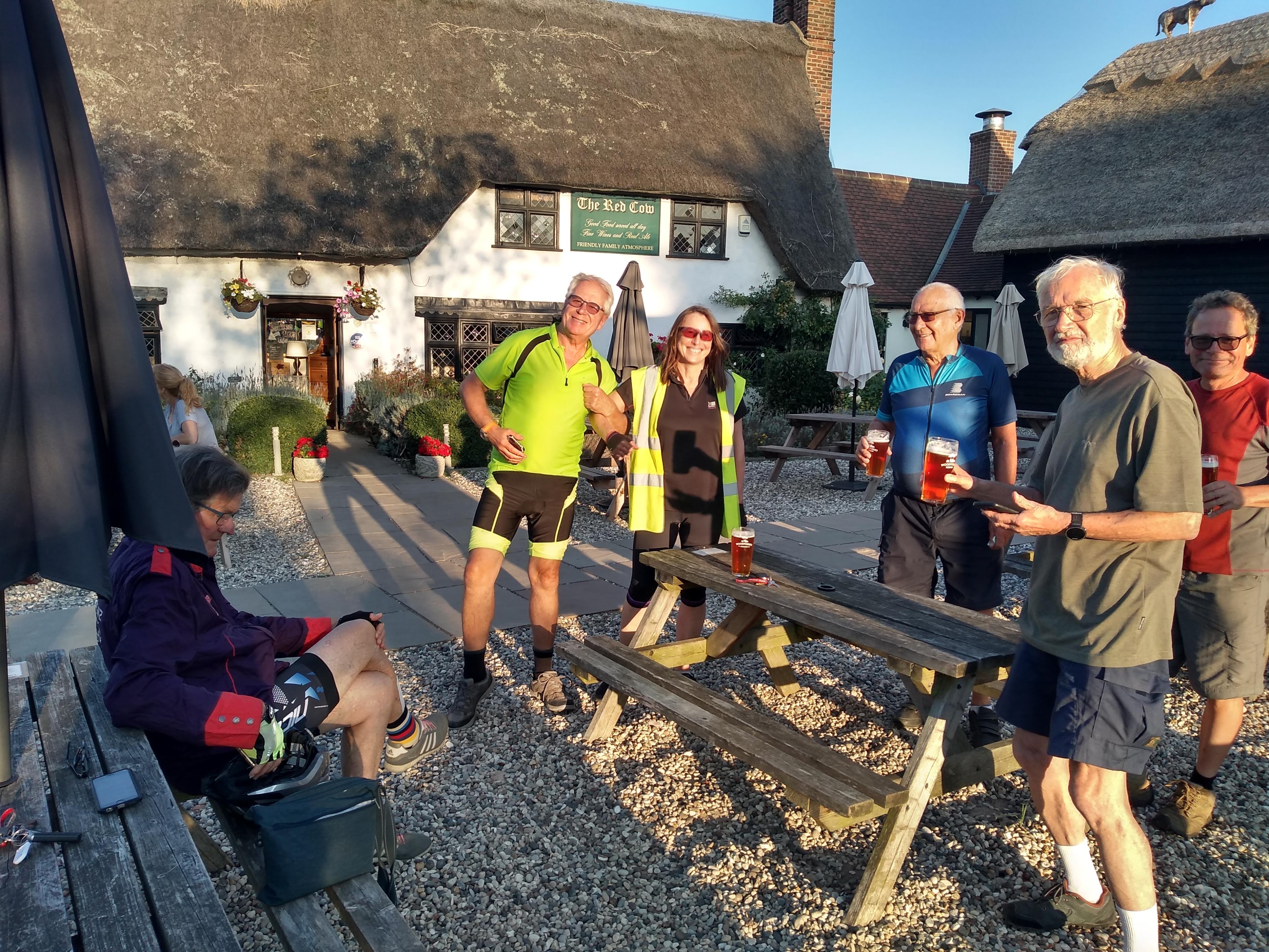 All this took place towards the end of a very pleasant ride around the lanes, starting and finishing at The Red Cow in Chrishall. Seven Windmillers set forth – Maurice, Andrew, Rod, Charles, Lawrence, Nick and Martin. Nick had come over from Meesden and so he peeled off at Langley Lower Green whilst the remaining six continued towards Clavering on a very warm and sunny evening – one of the best.