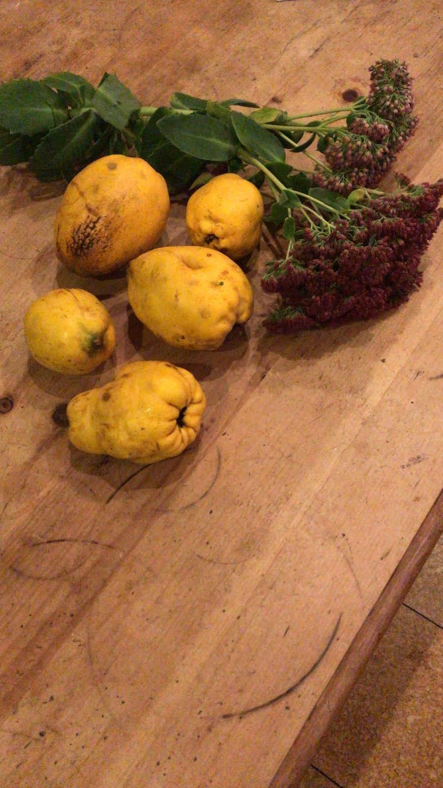Meanwhile, Andrew was on the look out as usual for roadkill, having been known in the past to stuff anything that looks tasty into his bike bag, dead or alive, including a solitary onion once. But on this occasion it wasn’t a pheasant or partridge or even the deer which he was seen eyeing up in a ditch near Chrishall recently, but some lovely looking quinces and an Ice Plant: