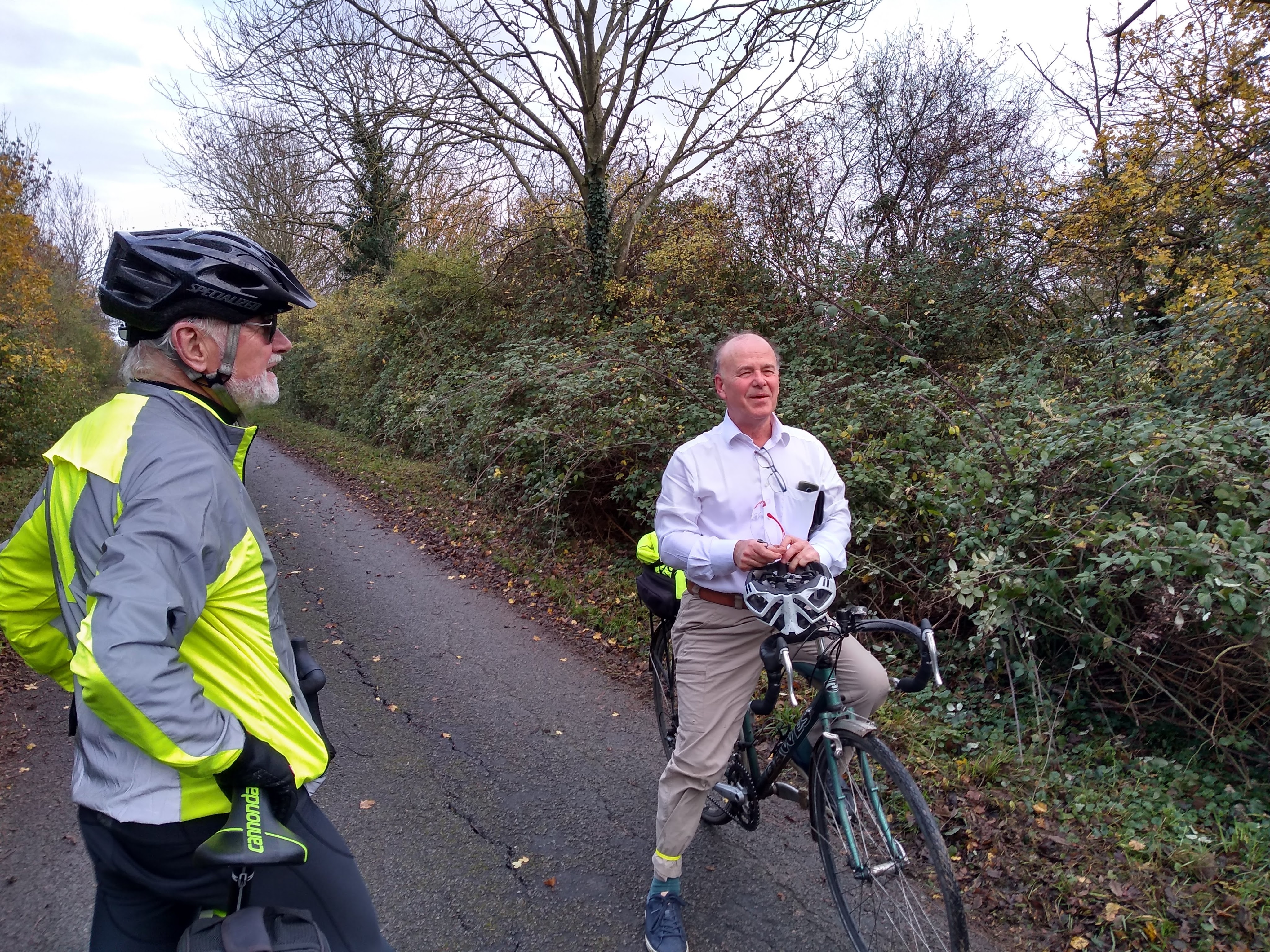 Maurice was the first person that Lawrence and Martin met, in Heydon, followed by Charles near Barkway golf course and Simon near Meesden, who had time to remove his helmet and get stuck into a big debate with Lawrence about the role of consultants in life. The consensus was that they are generally ripping off the taxpayer but Martin said why not become one if the Government chooses to throw our money around liberally? Ten minutes later we decided it might start to get dark and so we pedalled on. Then we met Deborah and Jenni who were clearly enjoying a nice autumnal ride. Here they all are: