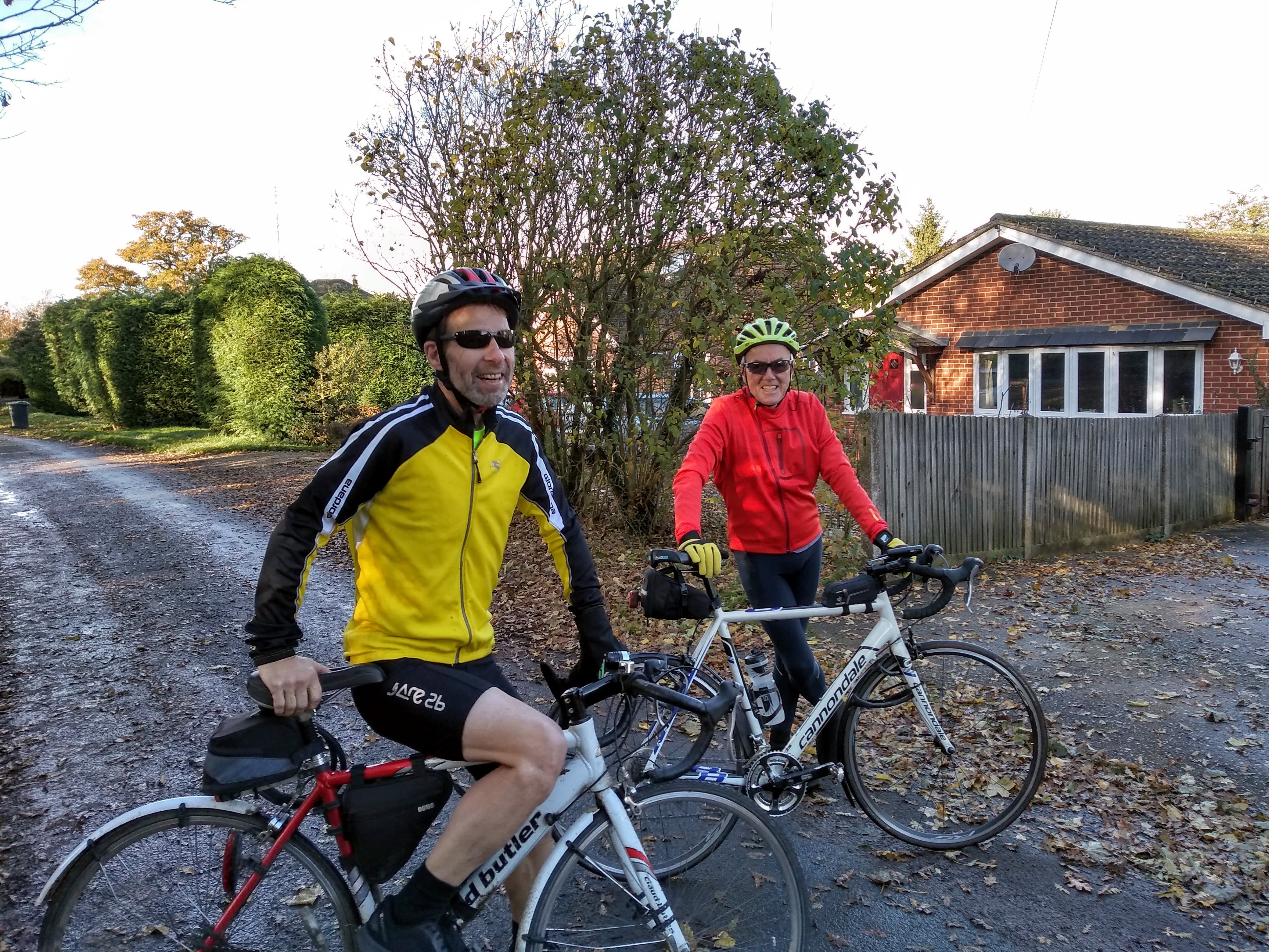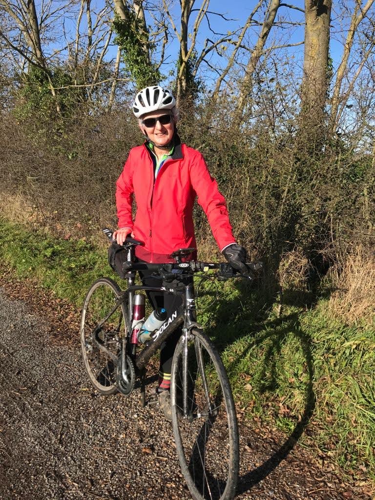 - Pulling up for a breather in Nuthampstead, we found ourselves outside Bridget Tarrington’s house – and there was the lady herself tending the garden. We had a lovely chat – hopefully overlooked by the lockdown police – separated as we were by Bridget’s garden gate. She sends her love to all and hopes to join us on a Monday ride in the spring.