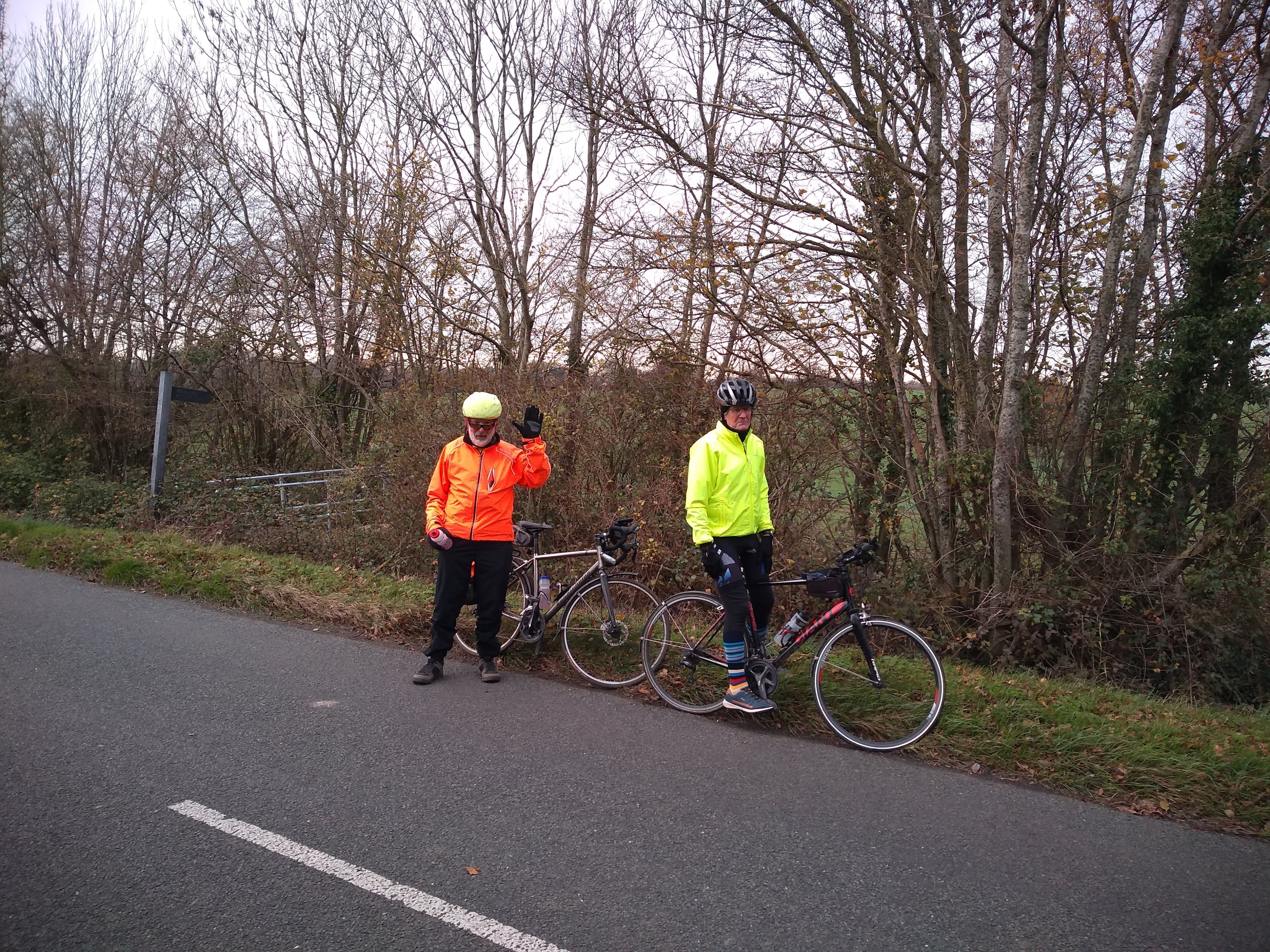 Bringing the departure time forward to 1.00pm enabled a pleasant CAC ride to take place in good light on this late November day. Maurice created an interesting circuit, resembling a map of England (minus Devon and Cornwall), Scotland and Wales, and it was joined at various places by nine Windmillers.