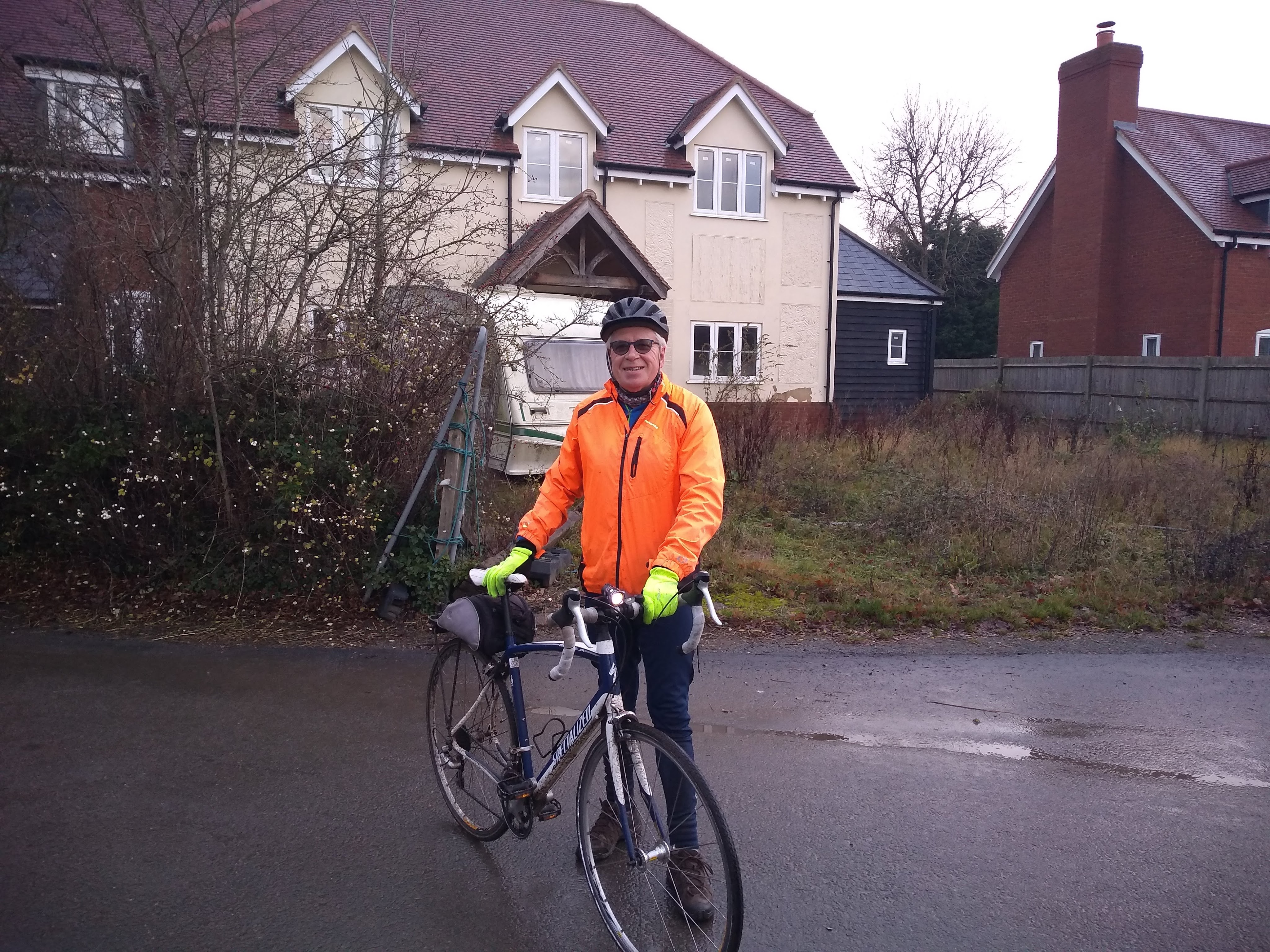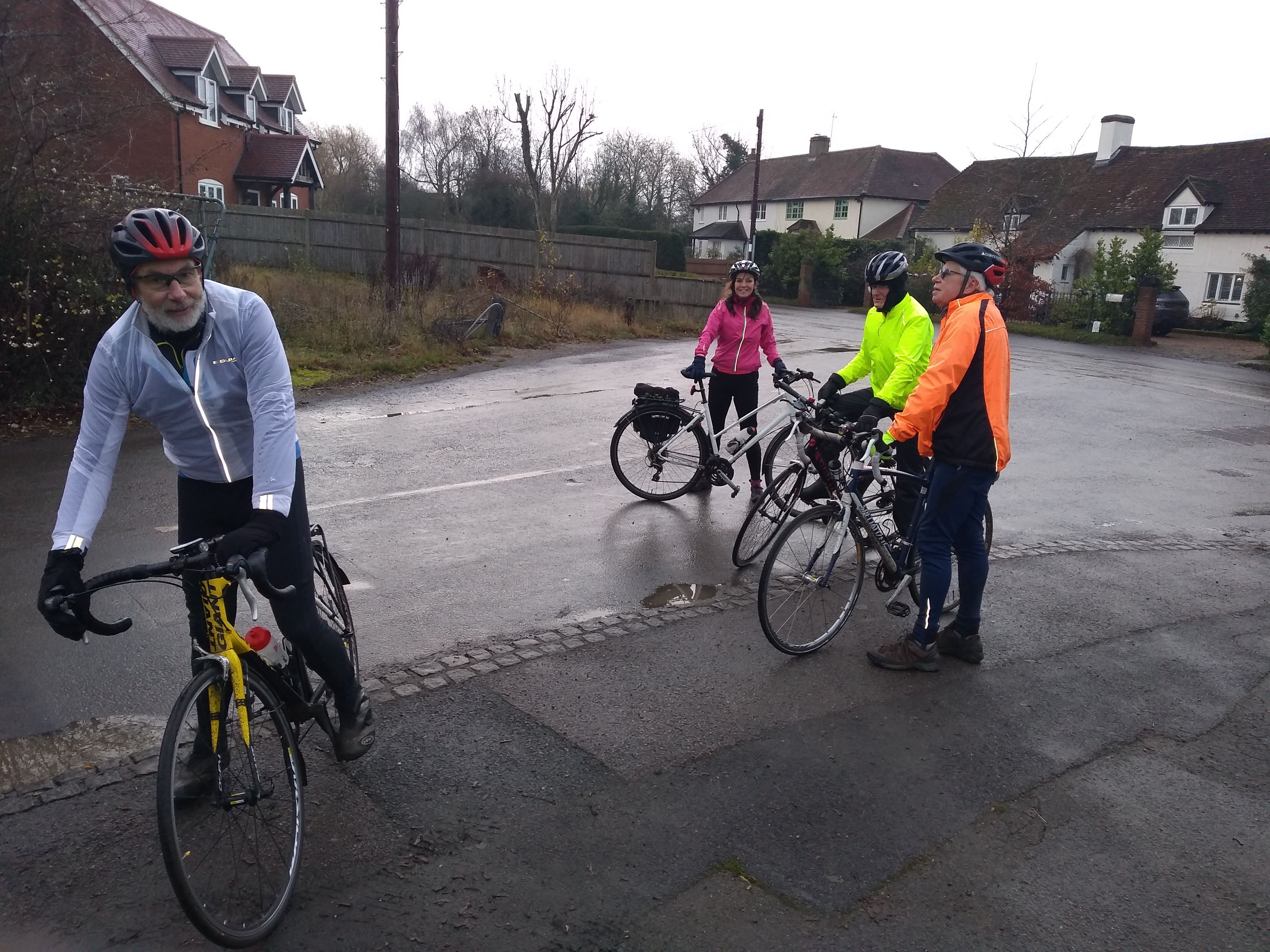 The homeward leg was uneventful and quiet as we just missed the school run and so no Volvos, Mercs or Beemers to contend with. Luckily no tractors either as we already had more than our fair share of mud. Saying farewell to Charles in Chrishall, thanking him for his kind offer of shelter, Martin carried on and having stopped at 3.25 in Elmdon to take the photo of the church he then met up with Graham and Suzanne who appeared at almost the same time after their AC ride. All three cycled back to Ickleton and Suzanne continued in the gloom to Abington having clocked up another impressive 35 miles – another contender perhaps for the mega distance ride per year award? Mind you, Graham will be hard to beat any year.