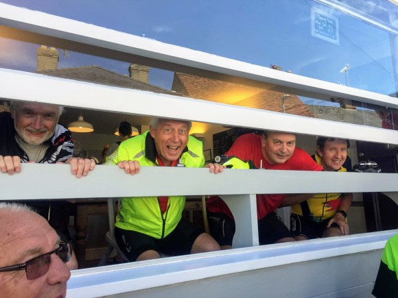Undaunted by Martin’s warning that much of the county was under water – we did indeed have to negotiate the odd flooded road – somehow we all got through without dismounting and wading.