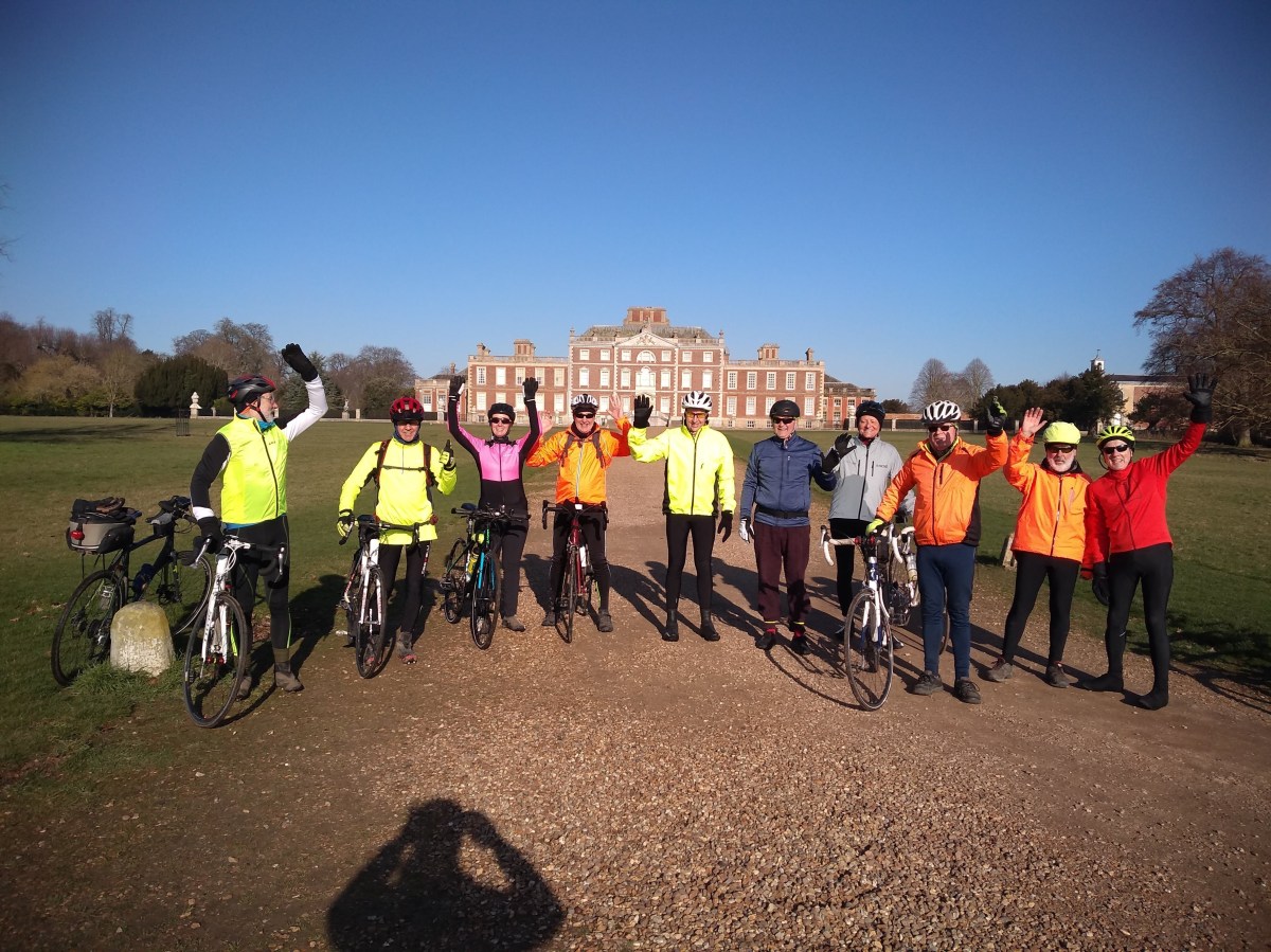 On 6th February we had a great turnout, as above, for a ride to Wimpole on a beautiful day. But it wasn’t long afterwards that storms Ciara and Dennis resulted in cancelled rides and the formation of the Windmill Dining Club to ensure we kept our local publicans happy.