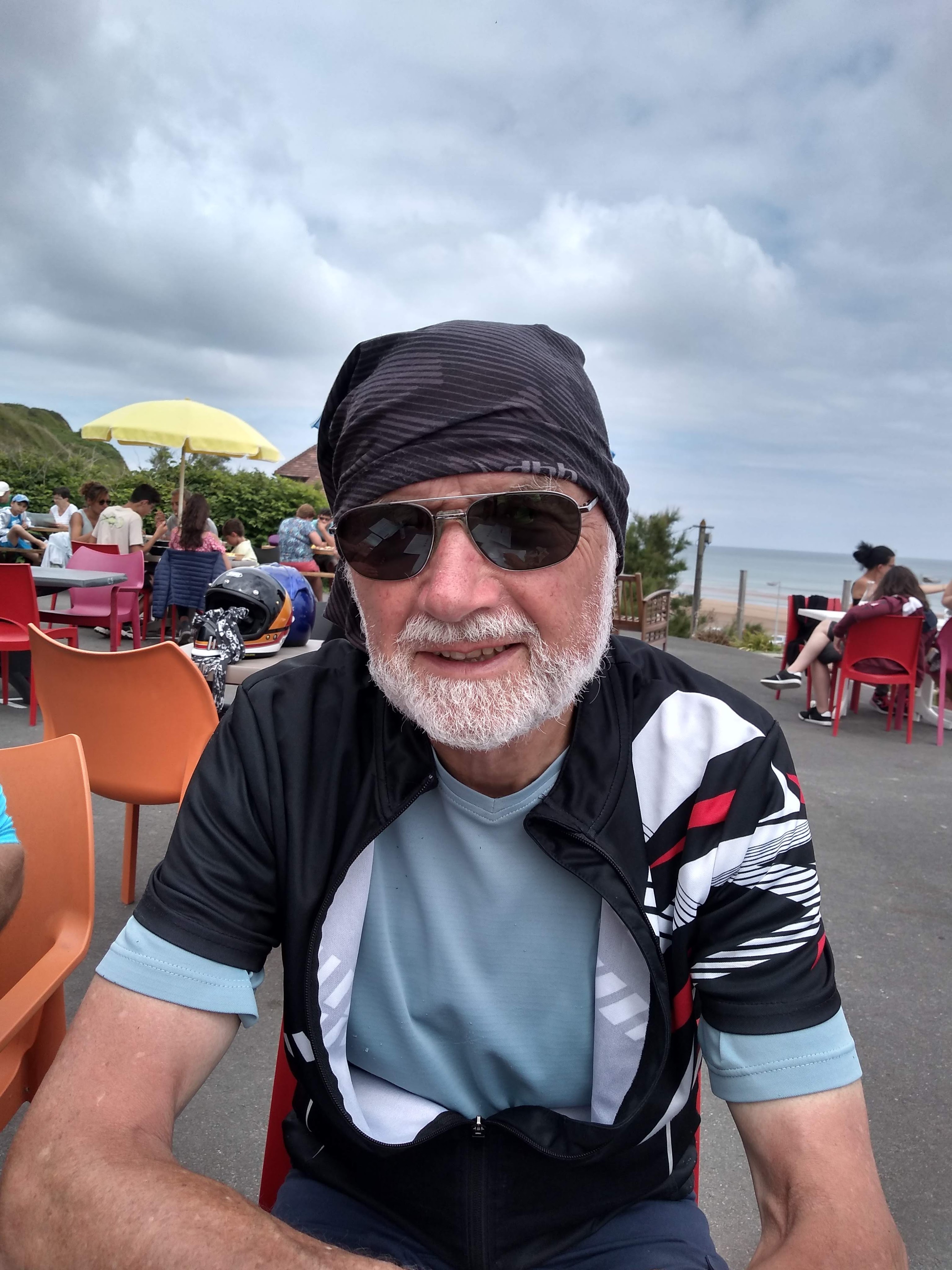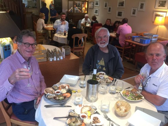So it was early on 13 July that Andrew, Simon, Lawrence and I departed in 2 cars plus bikes for Newhaven, having had to make last minute changes to our itinerary due to our ferry to St Malo being cancelled. But all went well, we had good weather throughout and stayed and ate at some nice places, demolishing platters of seafood at every opportunity. Andrew was our guide for the Normandy beach tour and we also stopped to pay our respects at the memorial to our Windmill friend Kell Ryan, who was well known in the area.