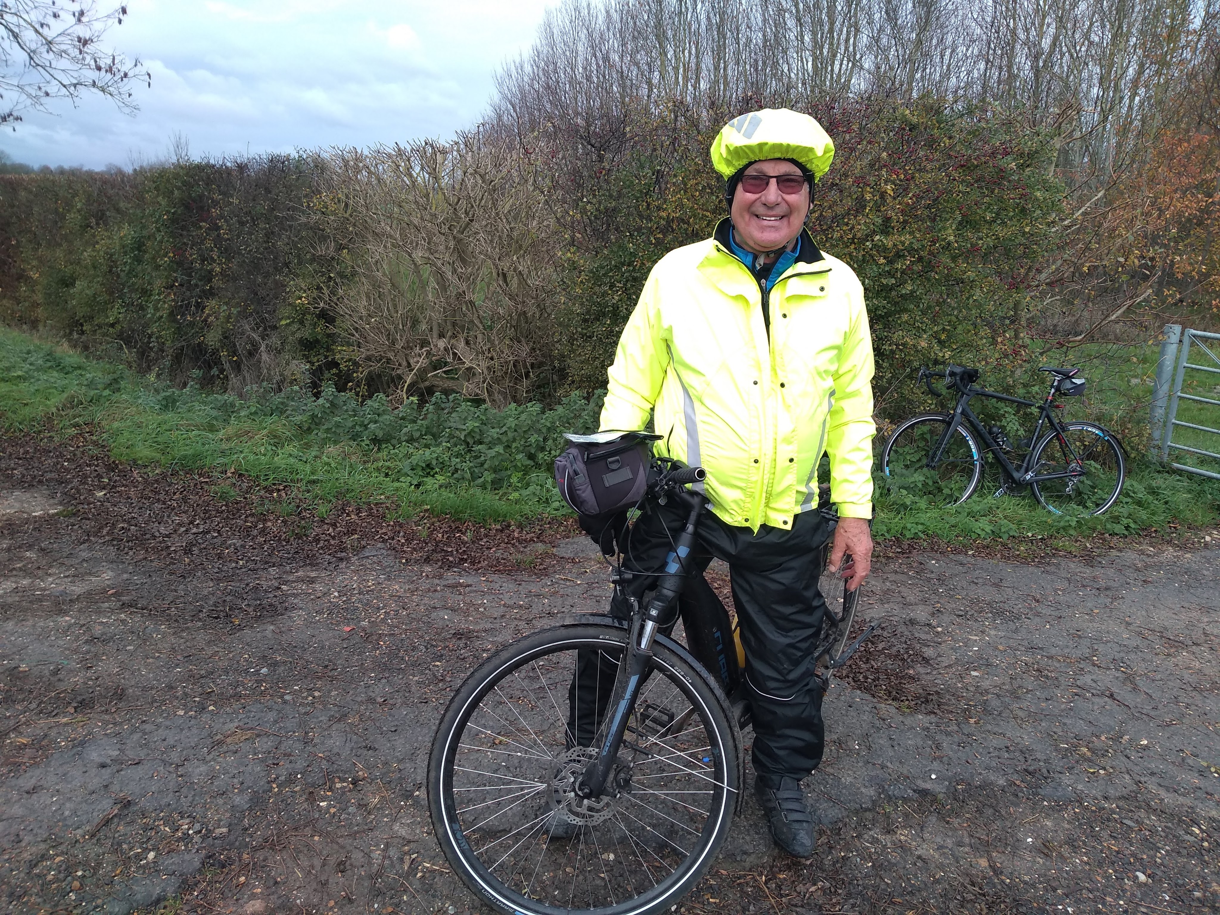 But by the end of November it was pretty cold, wet, murky and muddy. Brian had a bad day on the 19th having to endure wet weather, a puncture and a bad back all at the same time and the conditions had a strange effect on Simon who, cycling alone at the time, decided to compose the first of an anthology of poems about pigeons. Here it is which could perhaps be set to music and sung in a punk style: