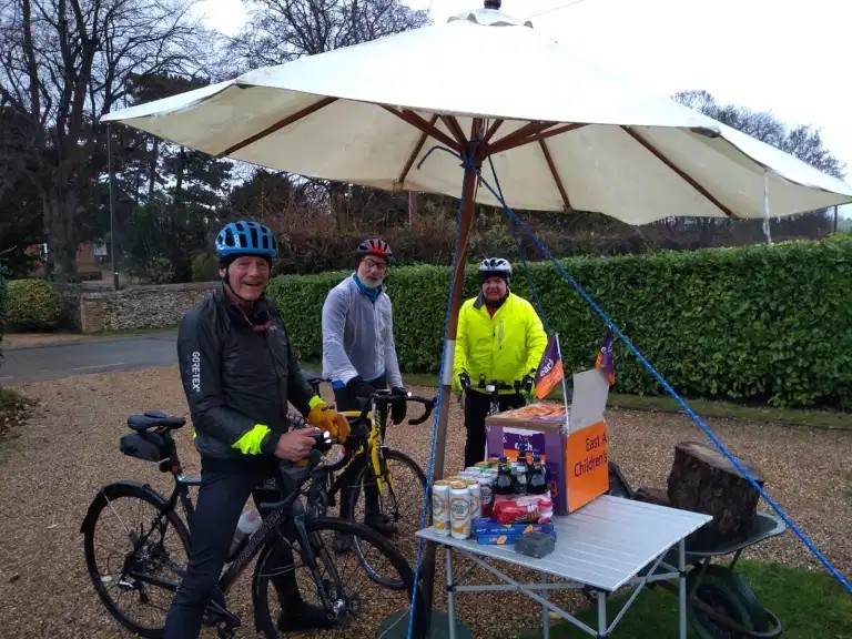 And then on 19th March the bombshell hit us. No more rides! Hibernation time for The Windmill Club! Deaths galore! Panic buying! The end is nigh! Suddenly, we had to adapt, quickly, if we were to remain sane. Owing to the club being affiliated to Cycling UK, the first thing was to stop organising group rides. But exercise outdoors was allowed and so Windmillers continued to ride individually and occasionally we bumped into each other. This happened with increasing frequency which led to the idea of creating a circuit and inviting members to join the circuit near to where they lived, some going clockwise and some anti-clockwise. This was quite legitimate under the Government’s rules and thus heralded what became known as CAC rides which continue to this day. The first one took place on 1 April and resulted in £80 being raised for the charities we support and a stop for refreshments at the end of Maurice’s long driveway, plus the recording of times for the circuit, suitably judged by Howard. The fastest time was set by Graham who did the circuit in 1 hour 49 minutes and 15 seconds.