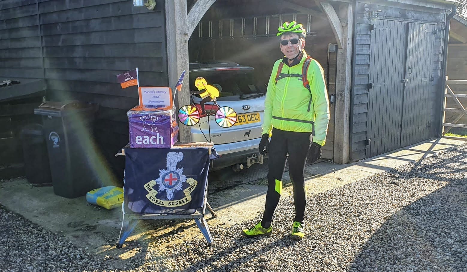Back at Charles’s house, where he was hosting the charity box, who would have known what adventures we had experienced? The weather was idyllic, Brian had been happily trying to obtain water from Charles’s emergency water supply (frozen solid perhaps) and Deborah was playing with her new puppy Esther which had returned for a spot of puppy sitting by Fiona. A different world.