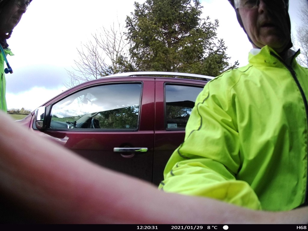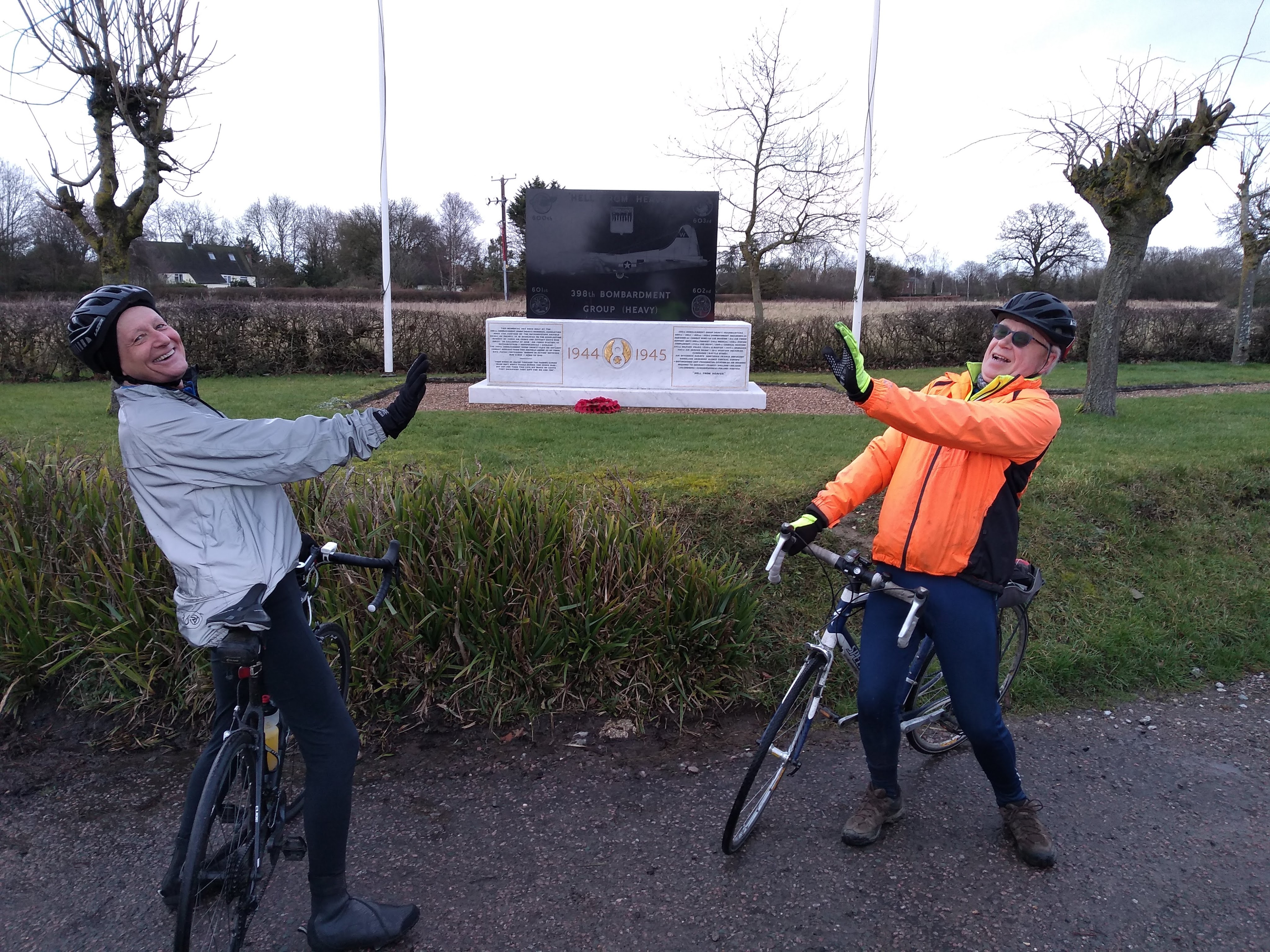 E-bikers Maurice and Rod were seen in Chrishall doing a C ride as Martin set off and it wasn’t long before C Roger and AC Martin met in Nuthampsted by the war memorial and were busy chatting when Andrew appeared, doing an AC ride. This prompted a socially distanced photo, or are they about to engage in some kind of virus rage? Make up your own mind: