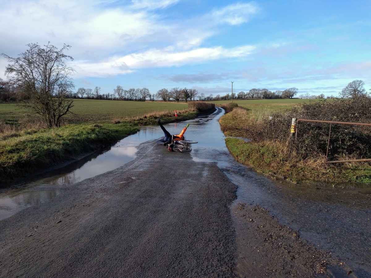 The offensive stretch of road near Furneux Pelham was awash with water, which just goes to show how easy it is for this to ice over once the temperature drops. A warning sign or two would be good to see at this site.