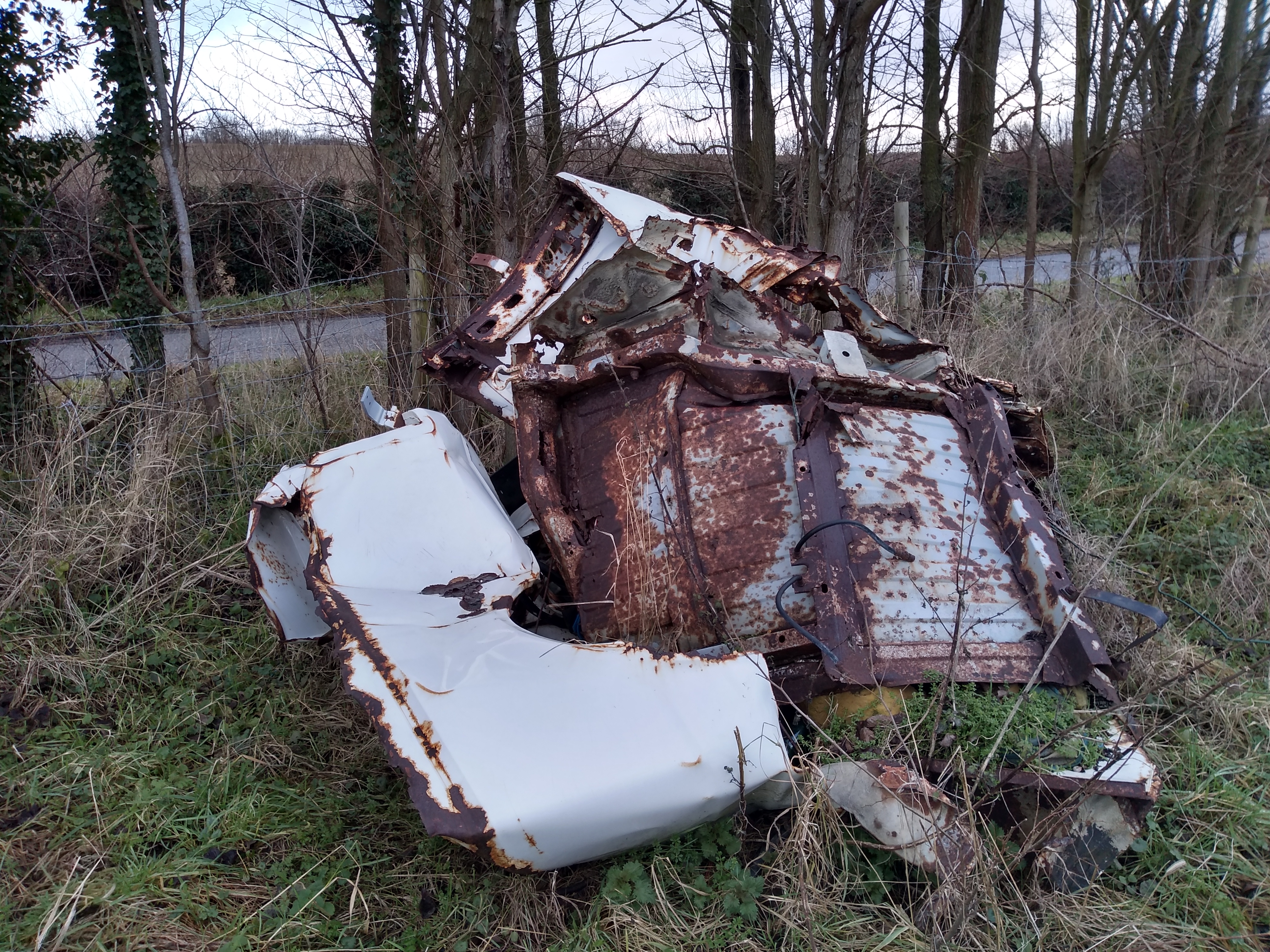 Windmillers spot all kinds of things on their travels around the lanes – some have a keen eye / ear for birds of the feathered kind, some for the non-feathered kind, some like Sandra can spot a herd of deer a mile away, some are always on the look out for interesting landscapes, some are petrol heads but Simon is always looking out for rusty old bits of junk lying in farmyards and hedgerows. This is the gem he spotted between Wicken Bonhunt and Arkesden: