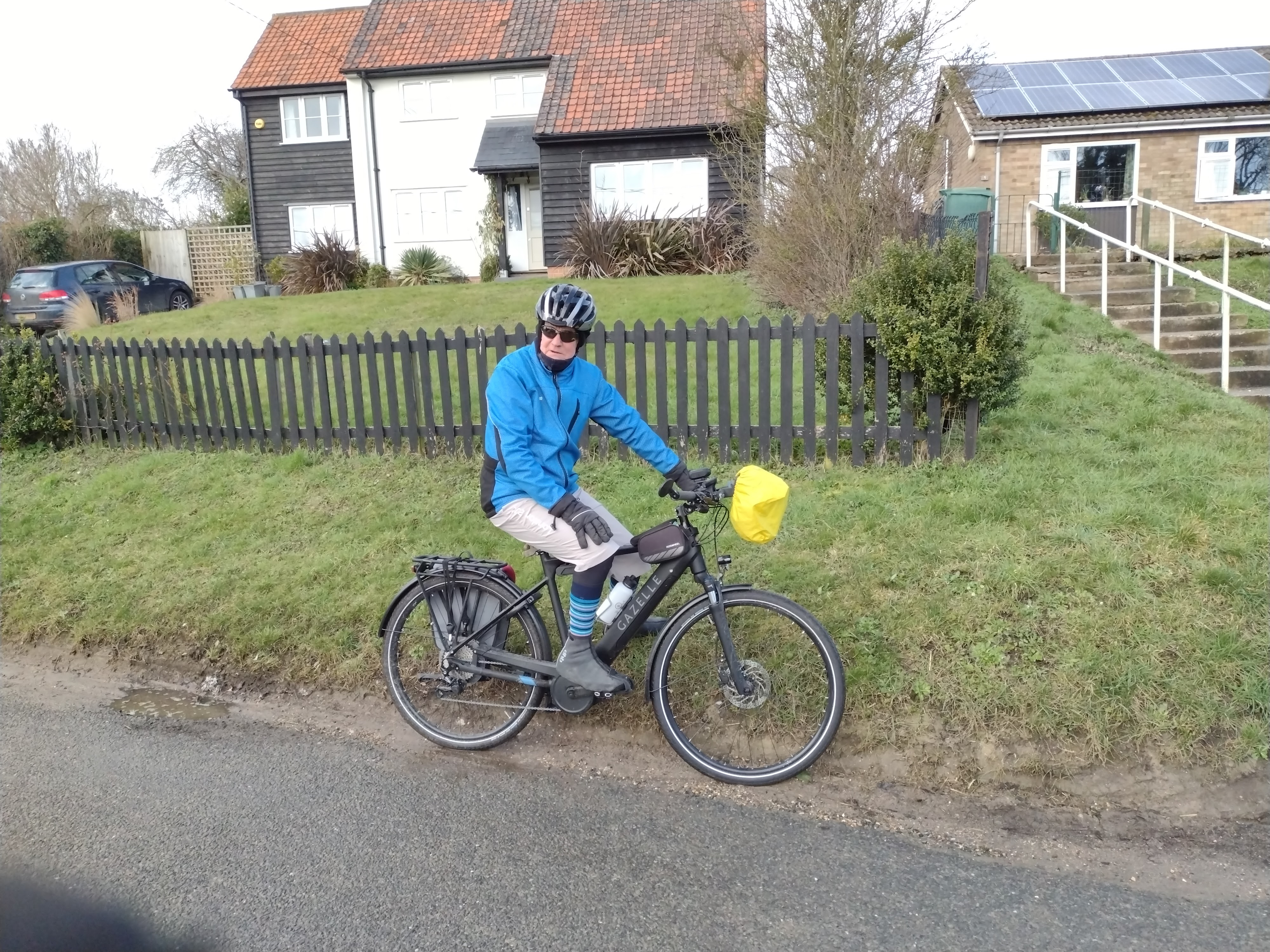 The e-bike brigade of Maurice, Rod, Charles and Nick were seen whizzing around on their high powered steeds but Charles was happy to slam on his disc brakes in Elmdon to show off his fancy new Gazelle:
