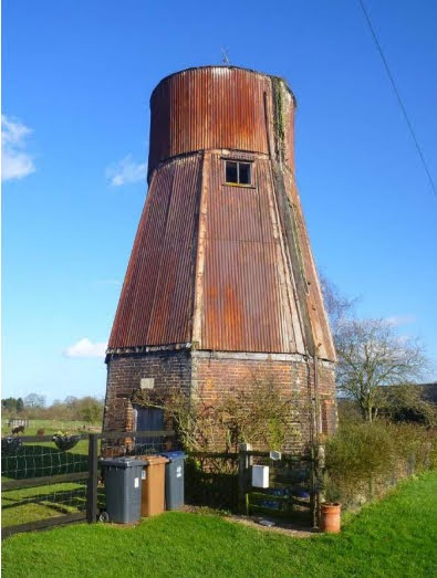 Being the Windmill Club, we are always on the lookout for a windmill photo opportunity. But have you noticed the shocking state of the mill at Brent Pelham? An oil painting it ain’t. Erected in 1826, it was adapted in the 20th century to house a water tank, was clad in corrugated iron and – as you will see below – is now in a very sorry state, indeed. Once Roger has finished restoring Furneux Pelham church maybe he can step in and restore Brent Pelham’s mill to its former glory.