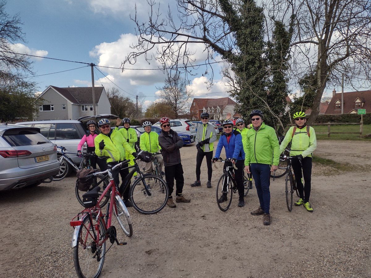 A welcome bonus for the Windmill Club when lockdowns are eased is that changes tend to take place on Mondays, which gives us an extra reason to celebrate. This ride was no exception with the wonderful bonus of pubs opening again, albeit outside, with no requirement to eat a Scotch egg or any other substantial meal, plus the ability to ride in groups larger than six should we wish to do so. So, The Red Cow in Chrishall exploded into life once again with people flocking in for a celebratory drink in the fresh air, warm at first but freezing cold as the evening wore on. The overflow car park was jammed, some customers making a special effort by arriving in their vintage cars. The Duke of Edinburgh would have loved it.