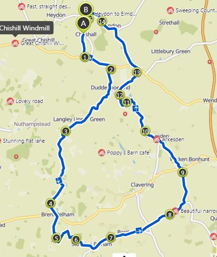 Monday 19th April 2021. Our second Monday starting from the Red Cow in Chrishall, with last week’s cold winds starting to ease. An excellent turnout which formed into two groups; Victor, Maurice, Deborah, Jenny, Suzanne and then Rod, Charles, Sandra, Andrew and myself (Simon). The route was as last week but in the reverse direction.
