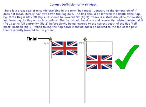 You idiots! Half-mast does not mean half way up the pole. Essex residents failed this test in significant numbers. So that members of this auspicious club do not make egregious errors, I include the correct protocol here.