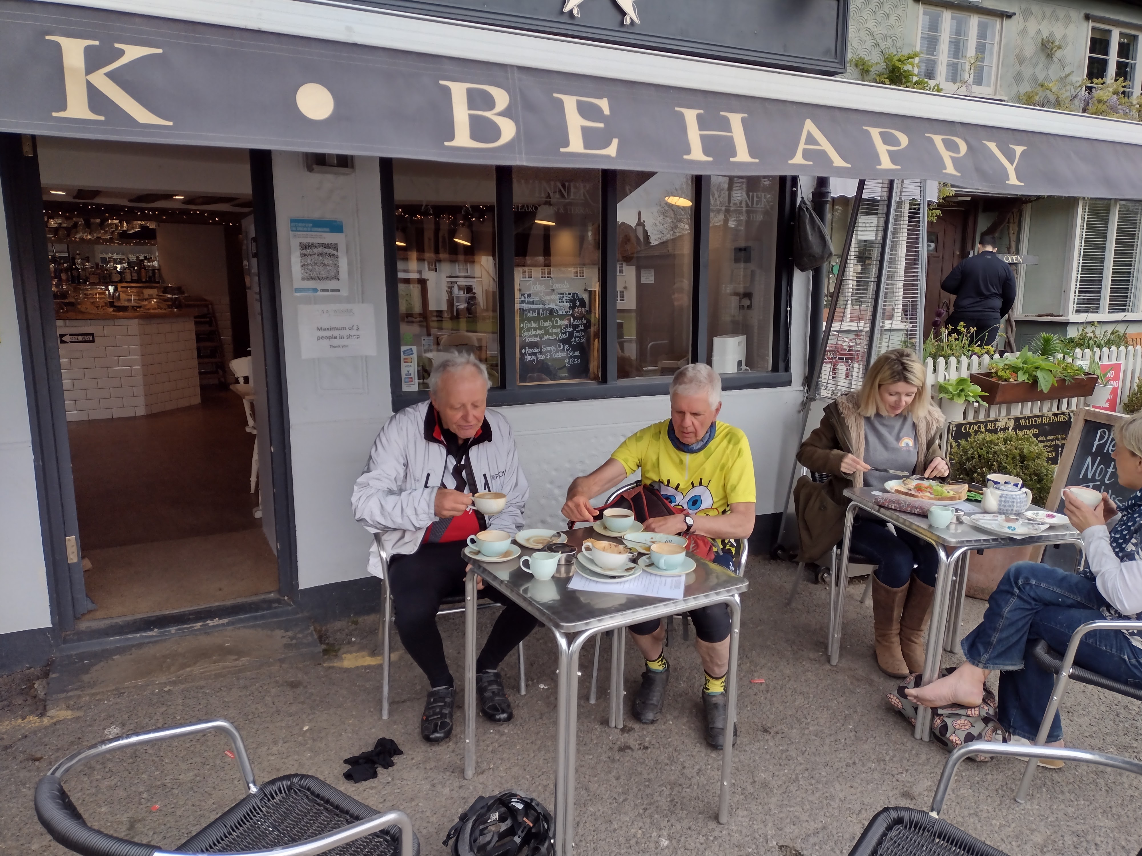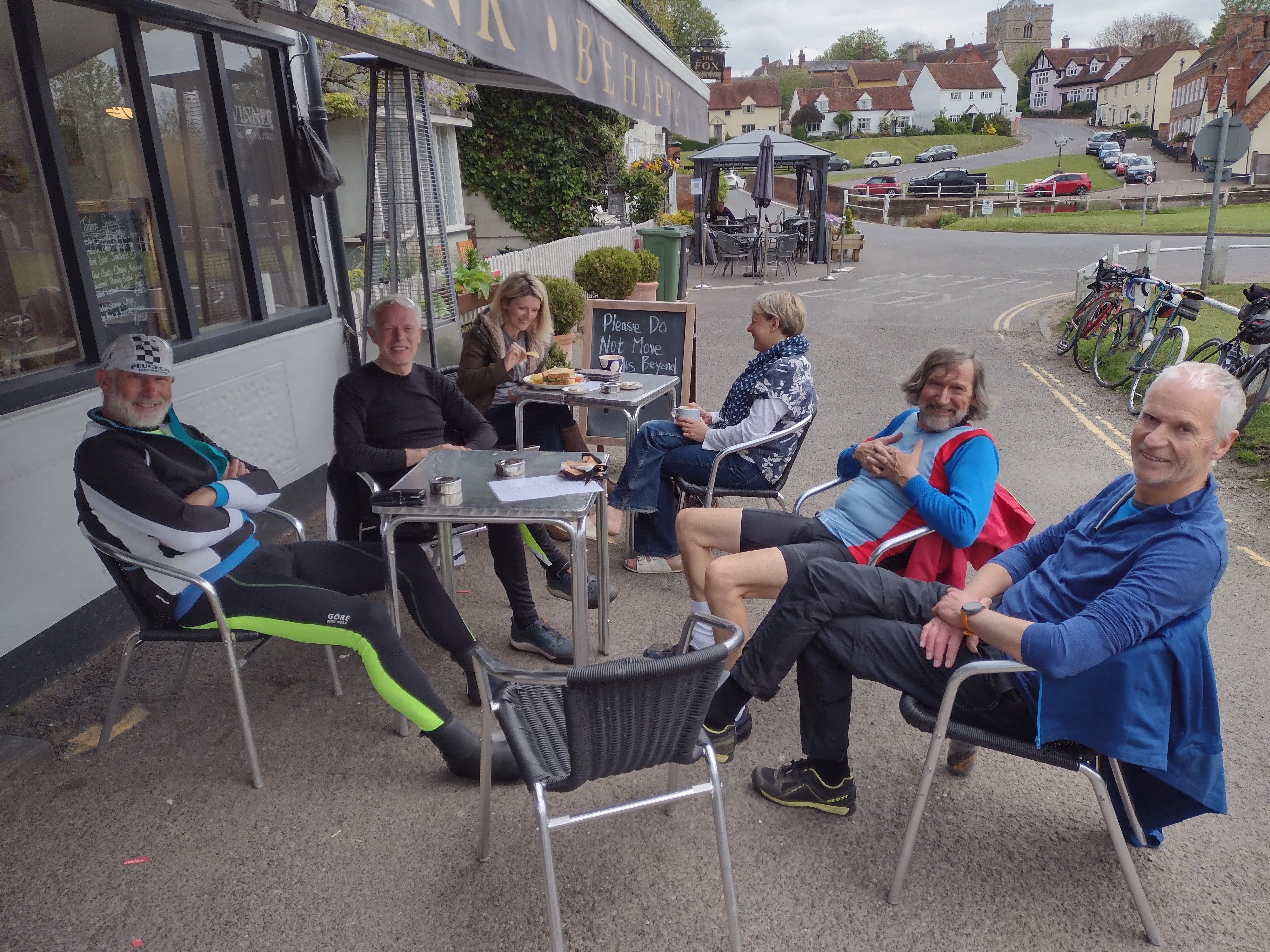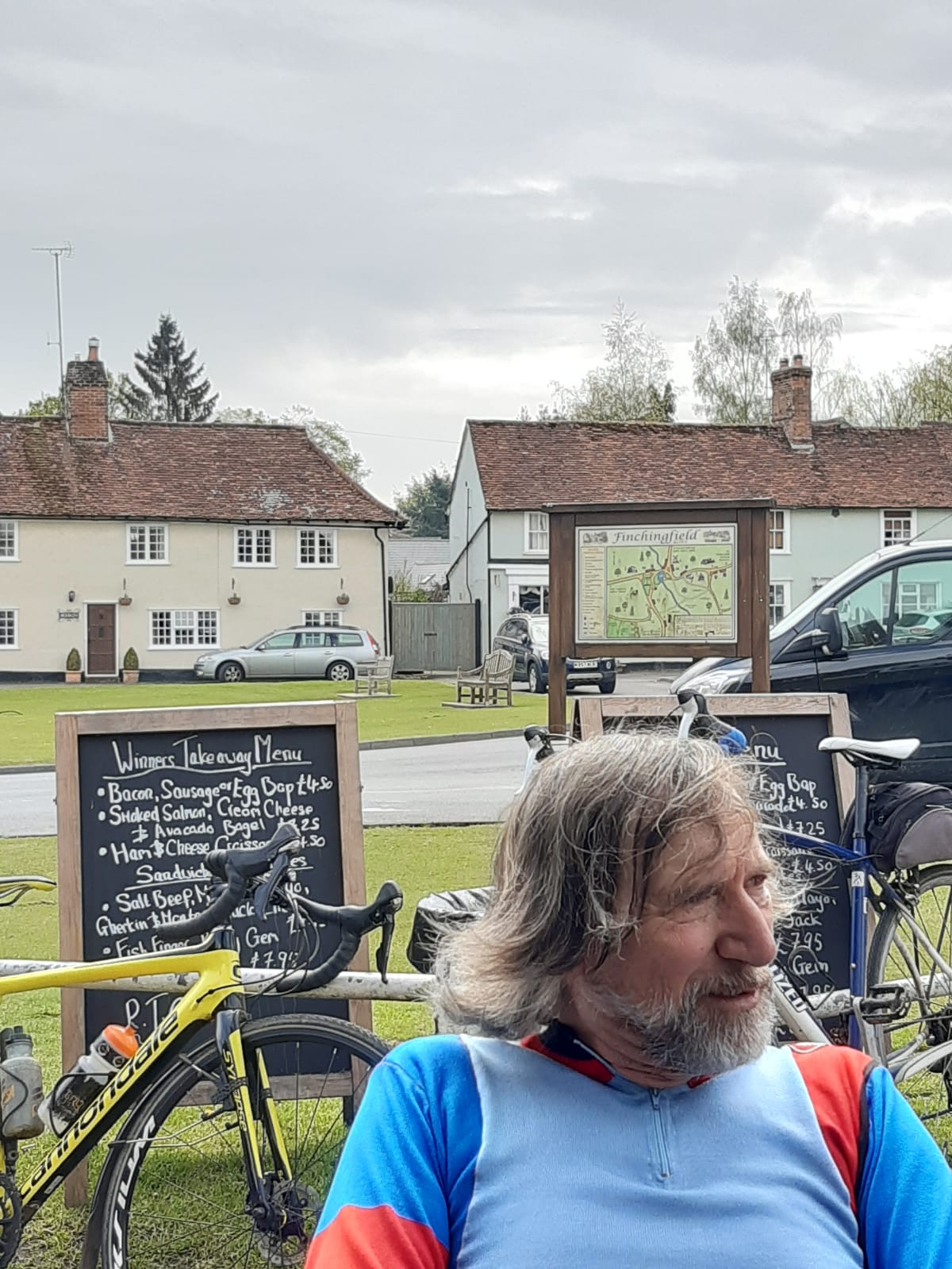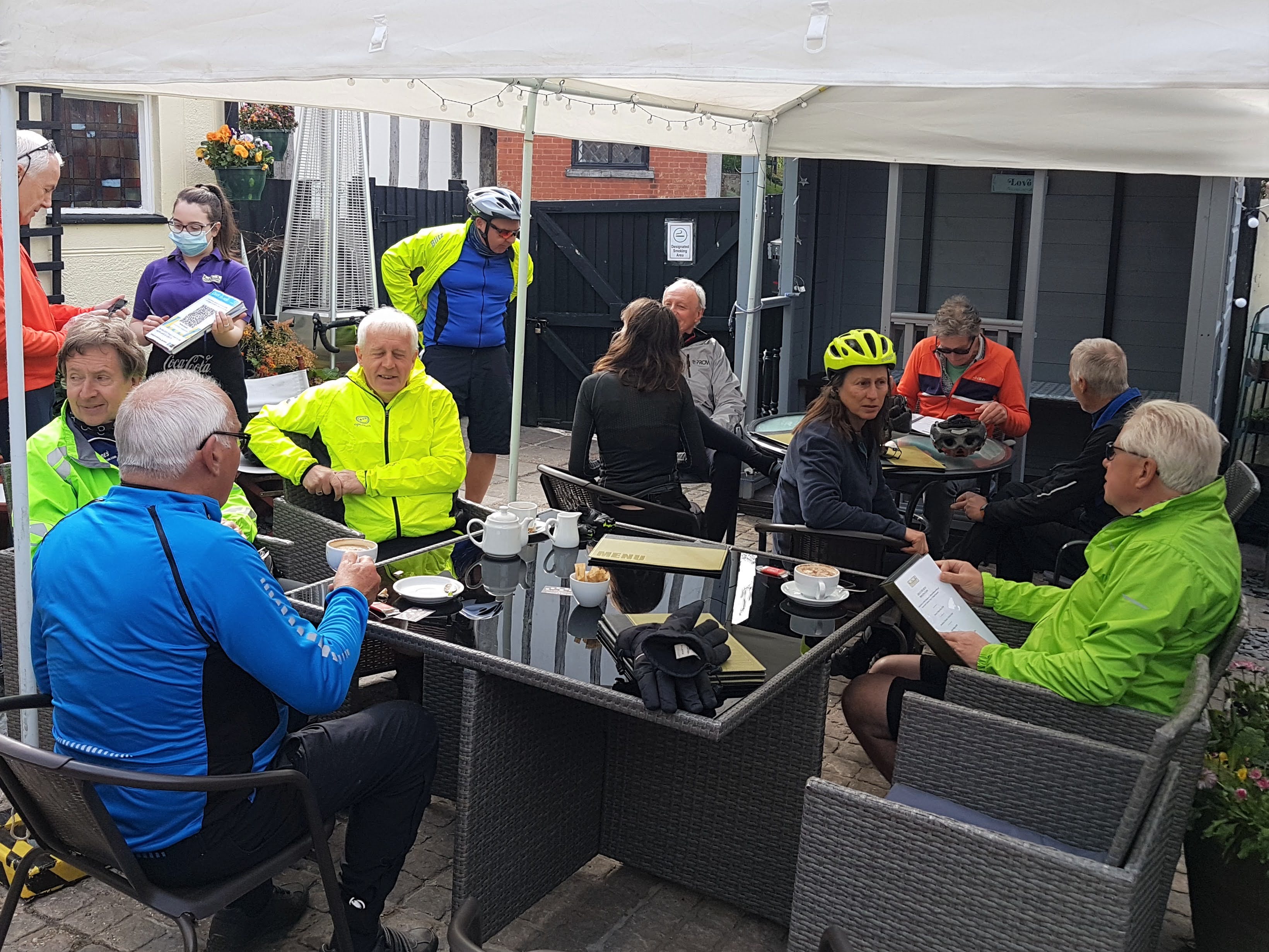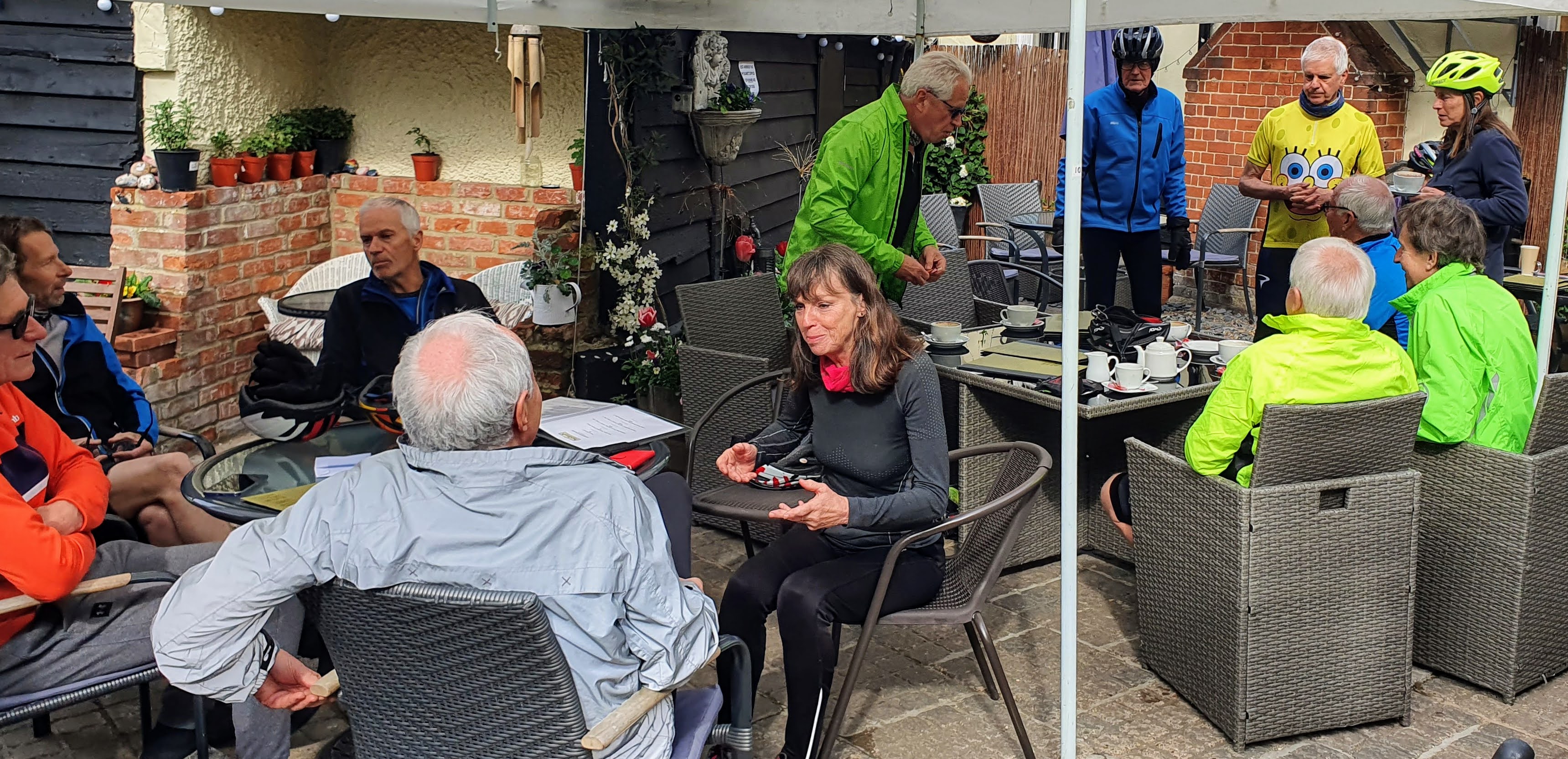 There seems to be always someone who is the centre of attention on a ride and this week it was the turn of Tom who arrived without his helmet (so easily done in the morning rush). Deborah came to the rescue (as often happens in these situations) and promptly whizzed off with Tom to a friend’s house to collect one. That made Tom, Deborah, Brian and Roger the last of three groups to set off, the first one being led by Maurice who shot off as usual at high speed and Martin leading the second group. But it wasn’t long before groups merged, demerged and even went different ways before all met up at Winners Café in Finchingfield for more coffee.