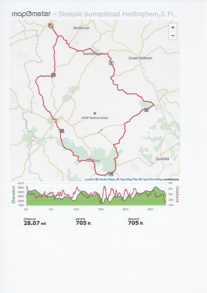 The starting point was The Fox and Hounds in Steeple Bumpstead where we were welcomed by the landlady and her staff at 9.00am for a civilised coffee and the placing of lunch orders before setting off on a quiet, twisty- turny route through very minor lanes in North Essex – how does Maurice do it? The man’s a miracle.