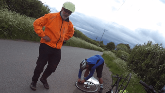 Jeremy had a front puncture. The front of the group had gone ahead but the stop call reached them before they had gone too far up the road.