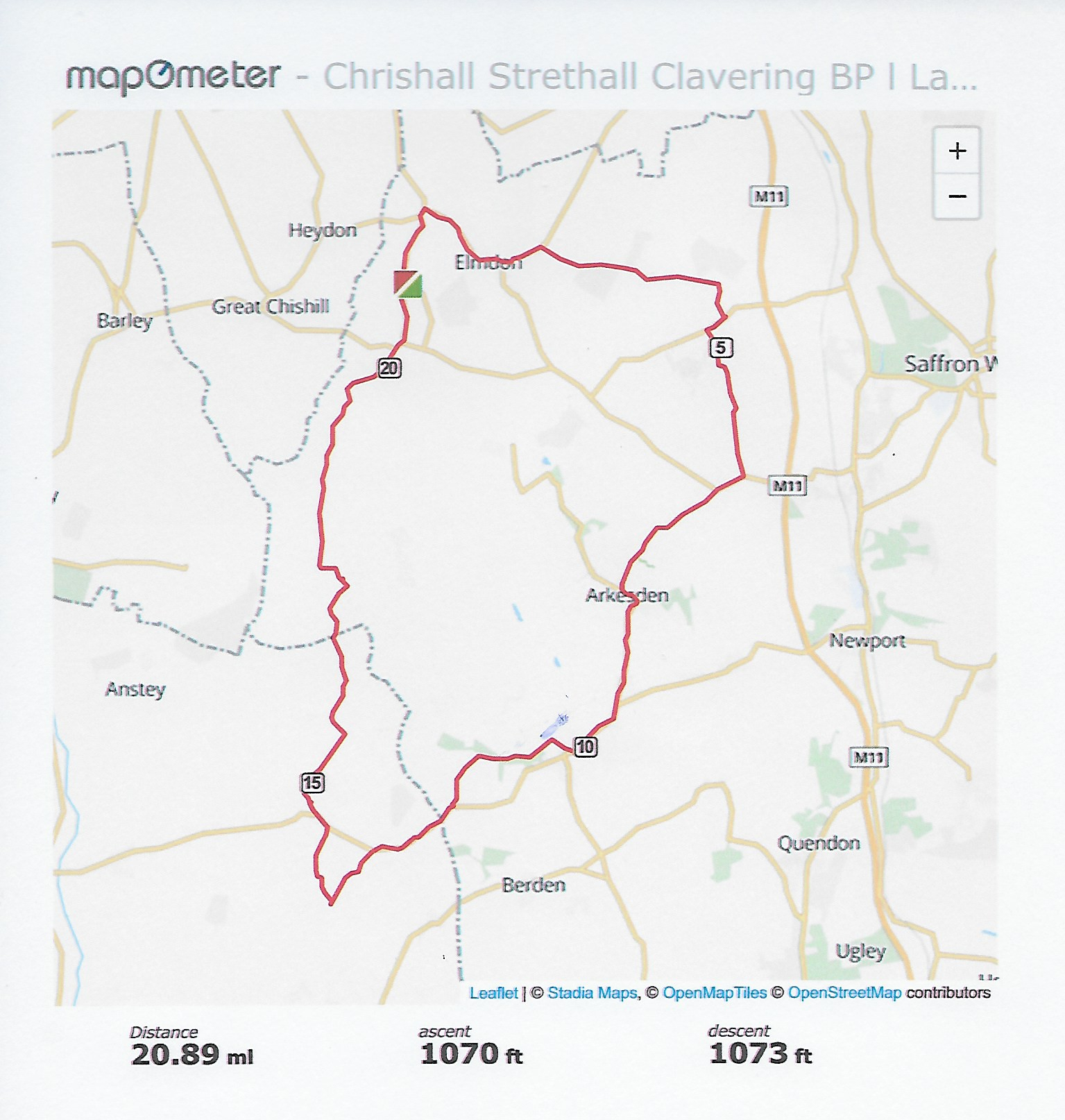 Starting from The Red Cow in Chrishall, Maurice, Andrew, Lindsey, Lawrence, Charles, Deborah, Nick, Suzanne and Martin set off on a repeat of last Monday’s ride but in an anti-clockwise direction, taking to gravel tracks at times. This is where we went: