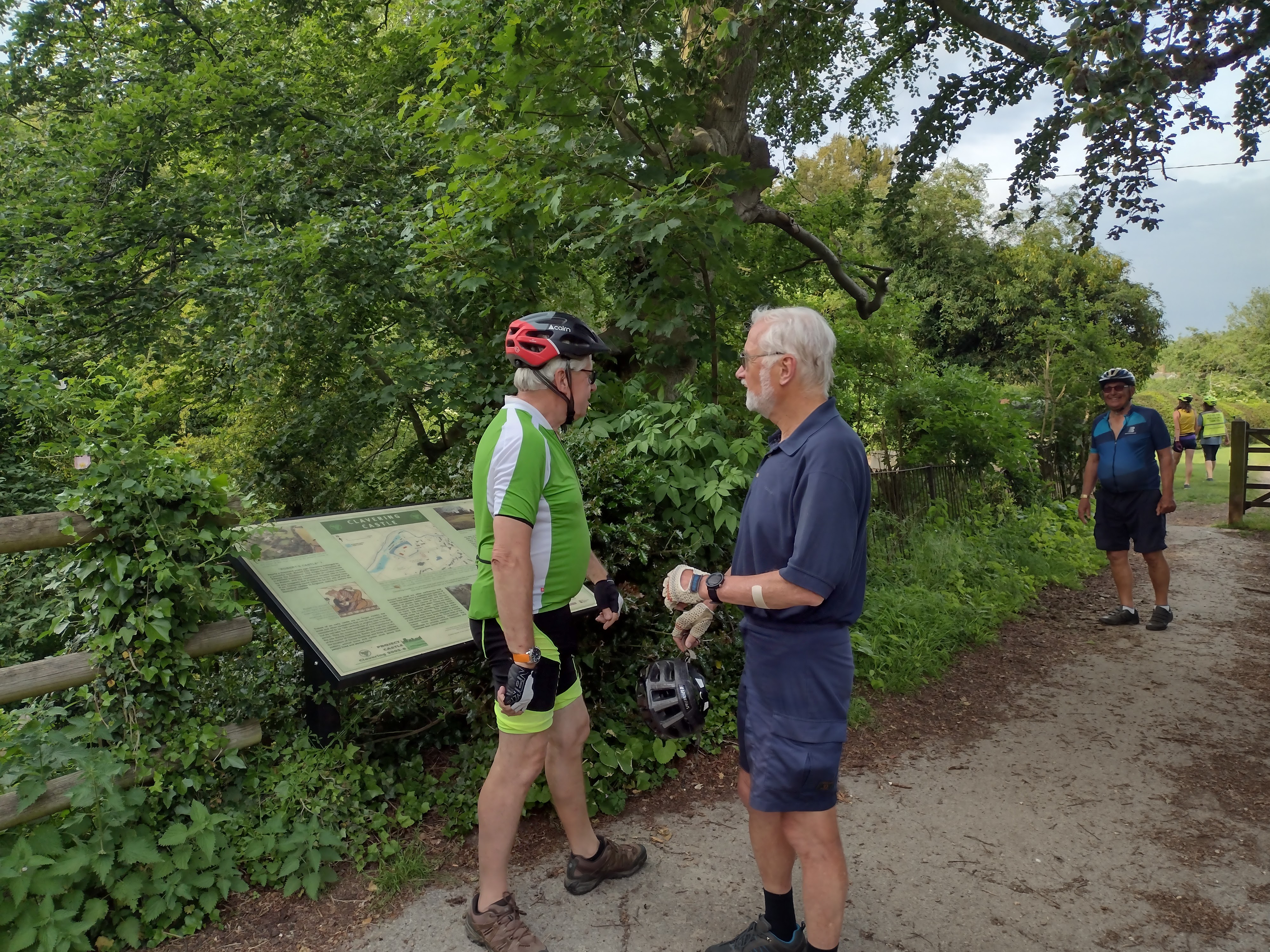 The site of Clavering Castle is reputed to be the oldest in England, according to the description on the information board overlooking the deep moat which would have surrounded it. Windmillers have ridden past the site on countless occasions without noticing it, hidden as it is behind trees and only accessible by a lane leading to the church or by a footpath, but on this ride a stop was made to soak up the history behind it.