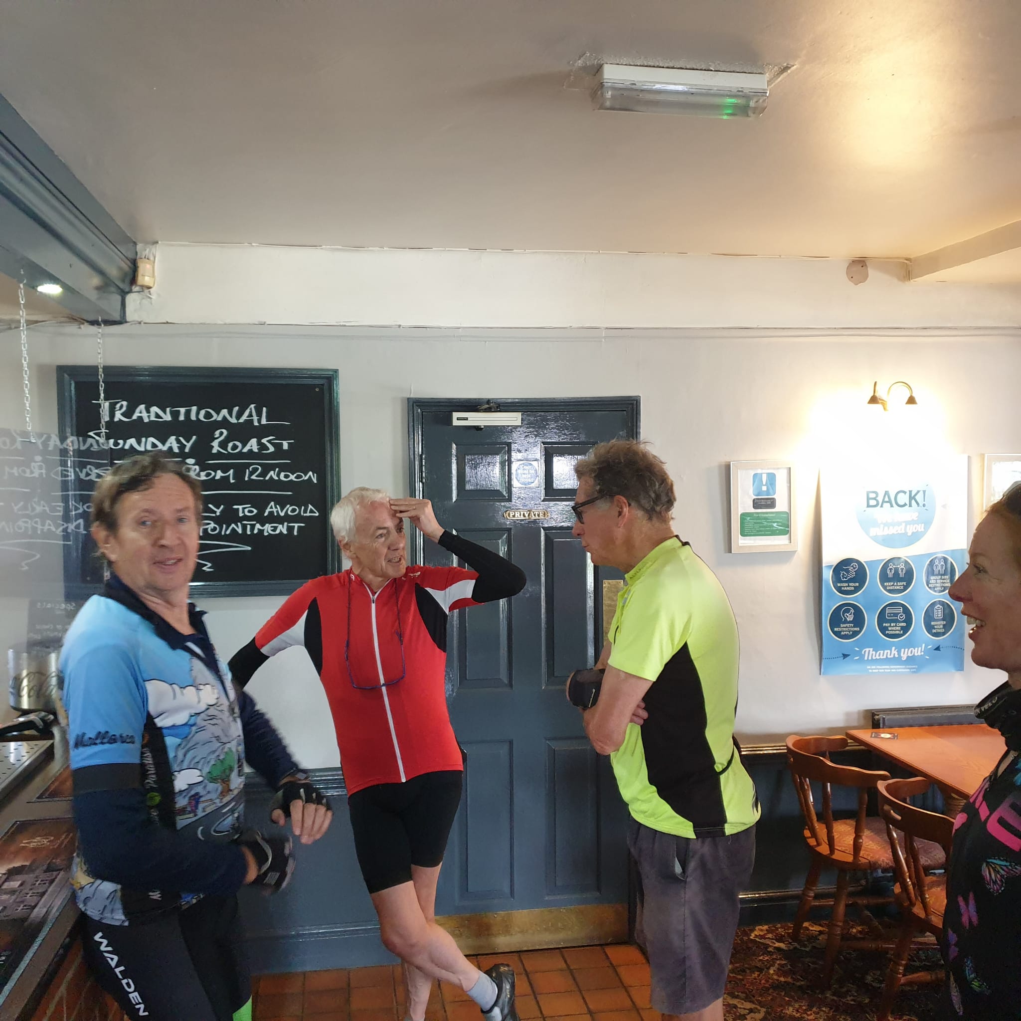 All changed in the team line up after coffee as Deborah was on a very tight schedule in order to get to Chelmsford by 1.30pm to view a wedding venue for her daughter and future son-in-law, who got engaged recently. Congratulations to them! There was much debate about how best to get to Chelmsford and the combined wisdom of Windmillers, which might well have resulted in Deborah getting hopelessly lost, actually enabled her to reach her destination bang on time. Much of this must have been due to Maurice switching to sport mode on his e-bike with his slightly depleted group (Victor and Ric joining team B, which was not considered a very good swap for losing Deborah!) keeping close behind.
