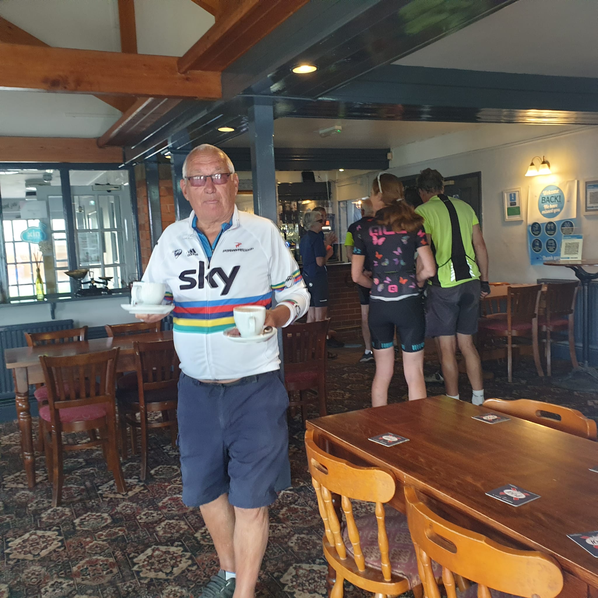 And a rapid ride it was, having first placed our orders for lunch at The Chestnut Tree and had a cup of coffee. But the coffee stop in Barrow at The Three Horseshoes was not so rapid as the coffee machine packed up after the first few had been dispensed, resulting in a long wait for a cup of instant for those at the back of the queue of 16 Windmillers. Blame the Chinese, said Charles, who spoke ecstacically of Danish machines but eventually, after pressing various buttons the machine starting behaving itself just as we were leaving.
