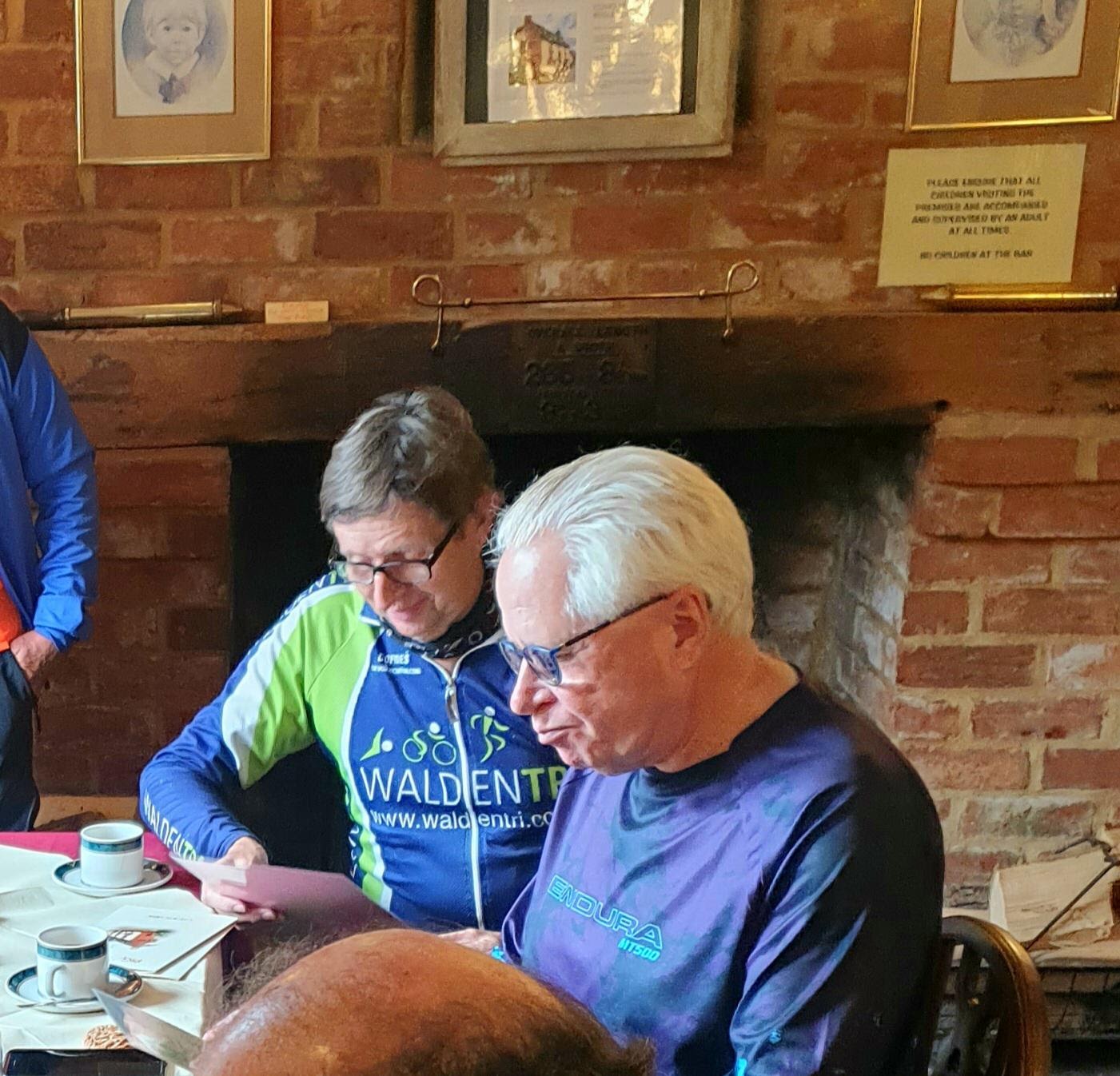 The return leg was uneventful, except for the occasional pump up by Alan, and relief was expressed all round that we descended the 10% Croydon hill rather than going up it.