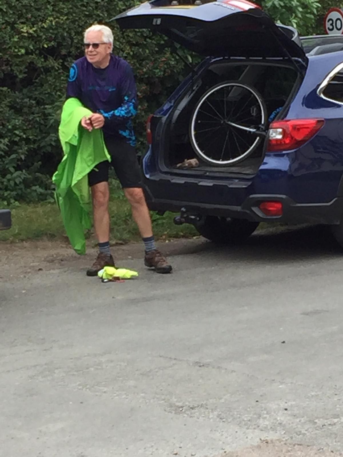 It wasn’t long before Alan hollered that he had a puncture, just before Barrington, but it turned out to be a mini one which was conquered at regular intervals thereafter by means of his trusty pump.