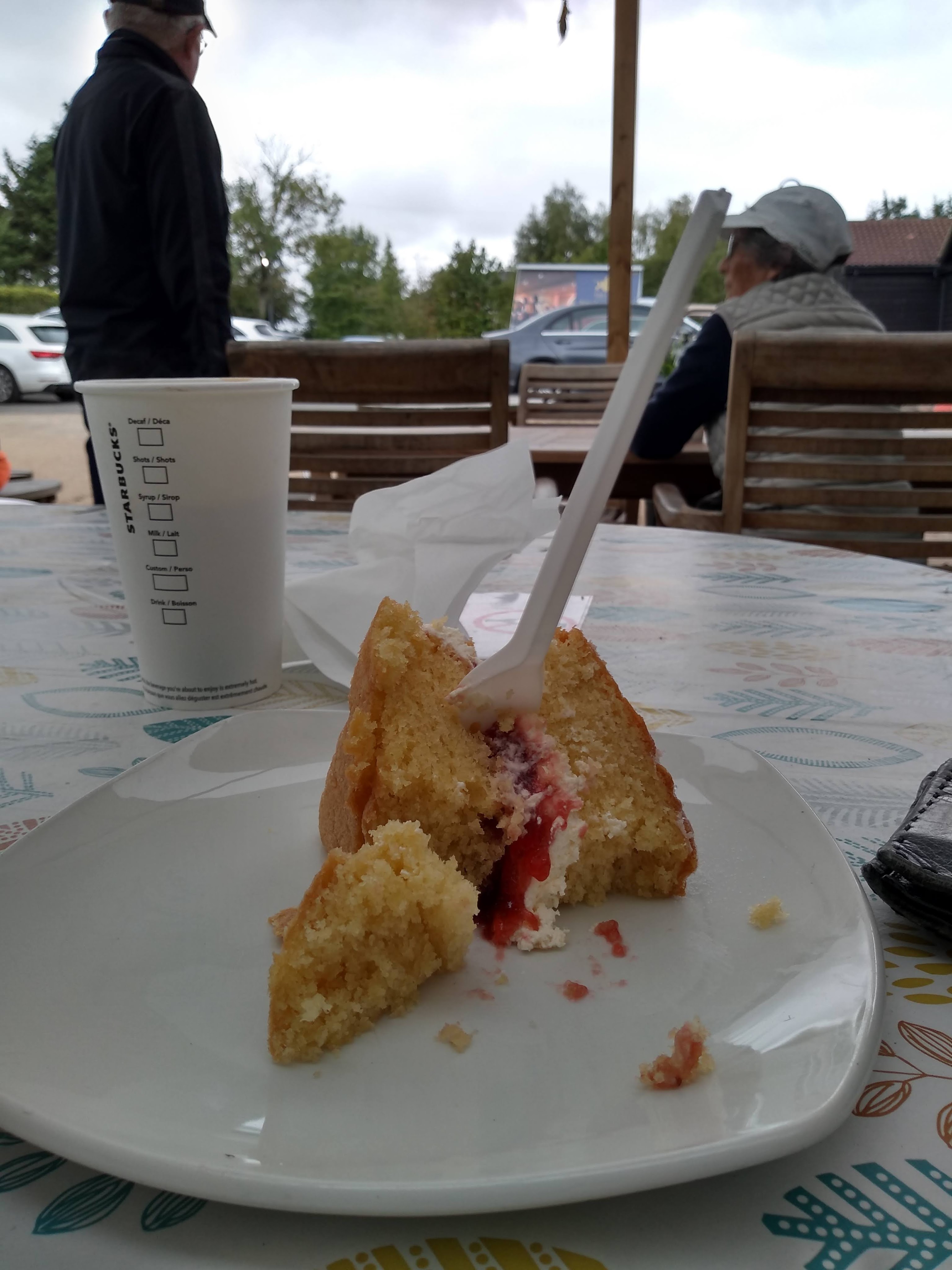On we went, taking a slight Maurice detour in Bourn as we did so, until another detour was made into what we thought was Bourn Golf Club for coffee until a chap with a yellow hat said it was a construction site for the new clubhouse. The old clubhouse was further down the road, where we pulled in for large slices of freshly made strawberry and cream sponge, but not an Americano or Cappucino in sight – just a bag of something that tasted frothy when stirred into hot water. Hopefully the new clubhouse will invest in a coffee machine.
