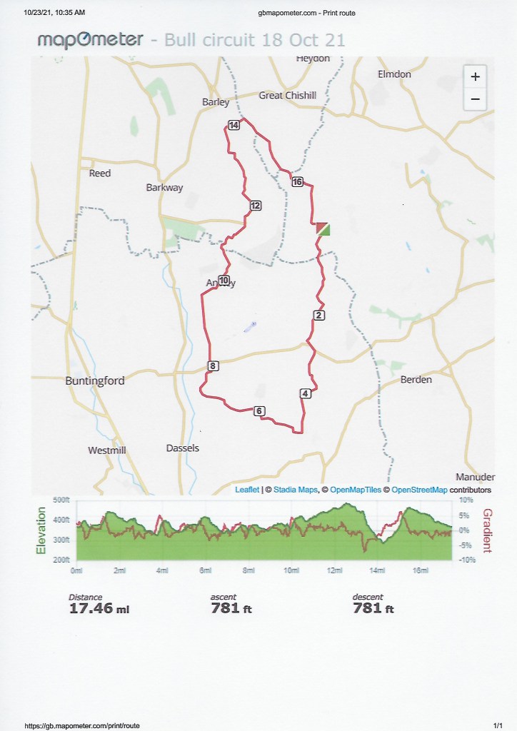 Thanks go to Maurice for changing the route to avoid a section on the A505 and to Andrew, who was nursing a bad back and couldn’t join us, for organising us. Thanks also to Charles for some of the photos.