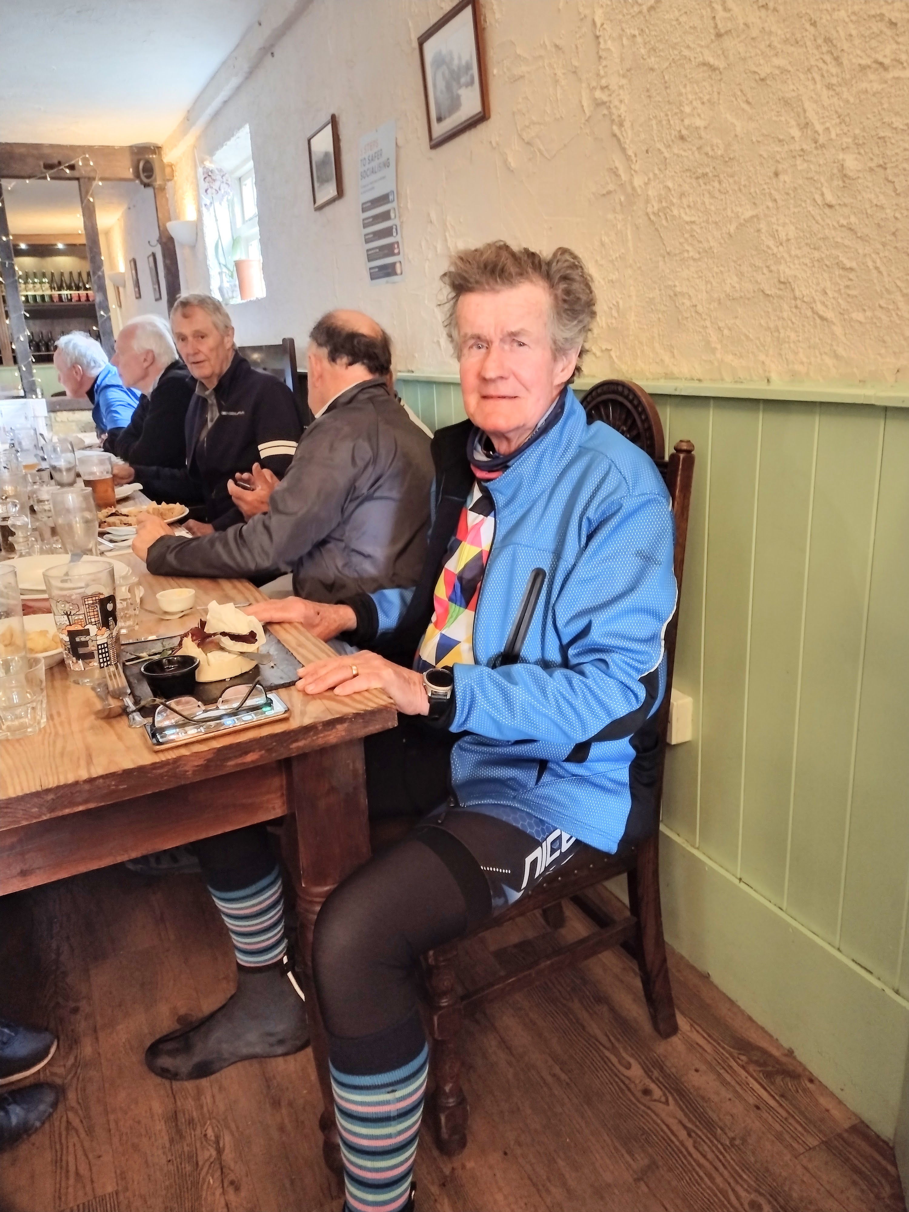 The return leg took us through more water-logged roads as far as Sandon where Group B spotted Group A just leaving after stopping to chat with John who was sunning himself on a seat overlooking the famous duck pond.