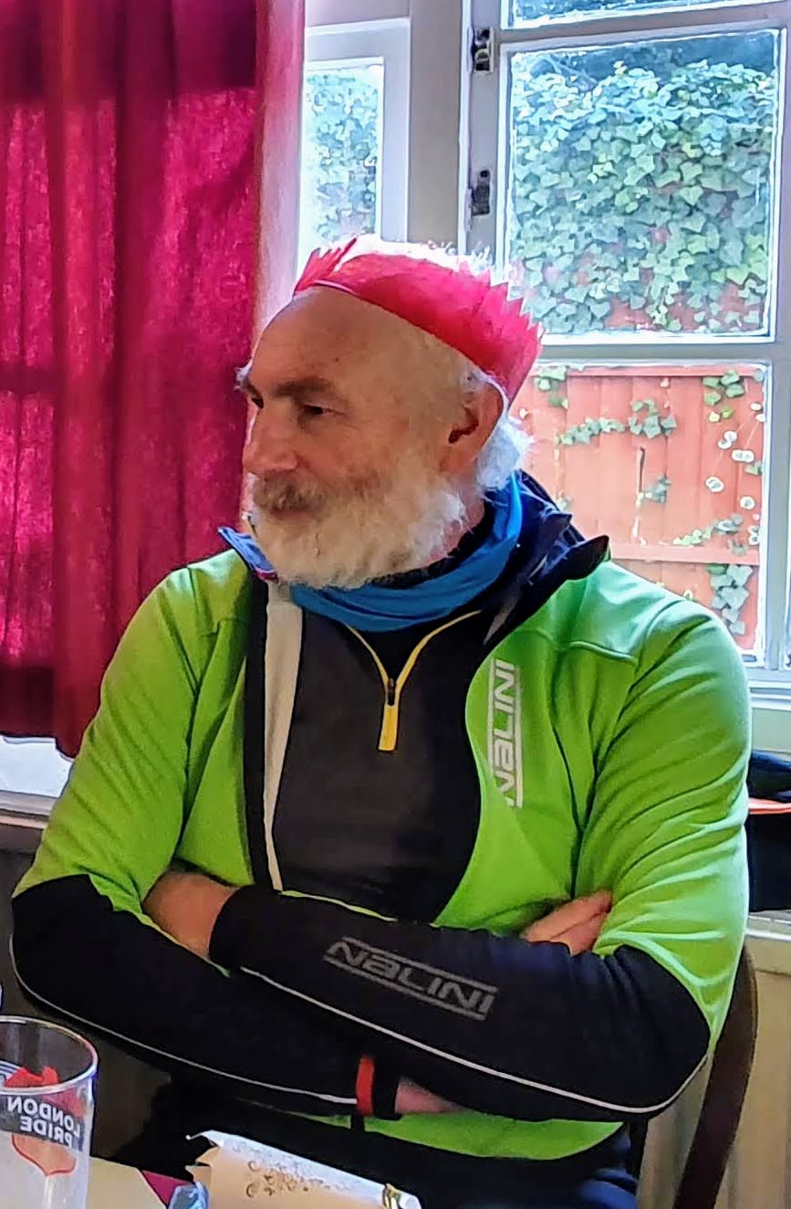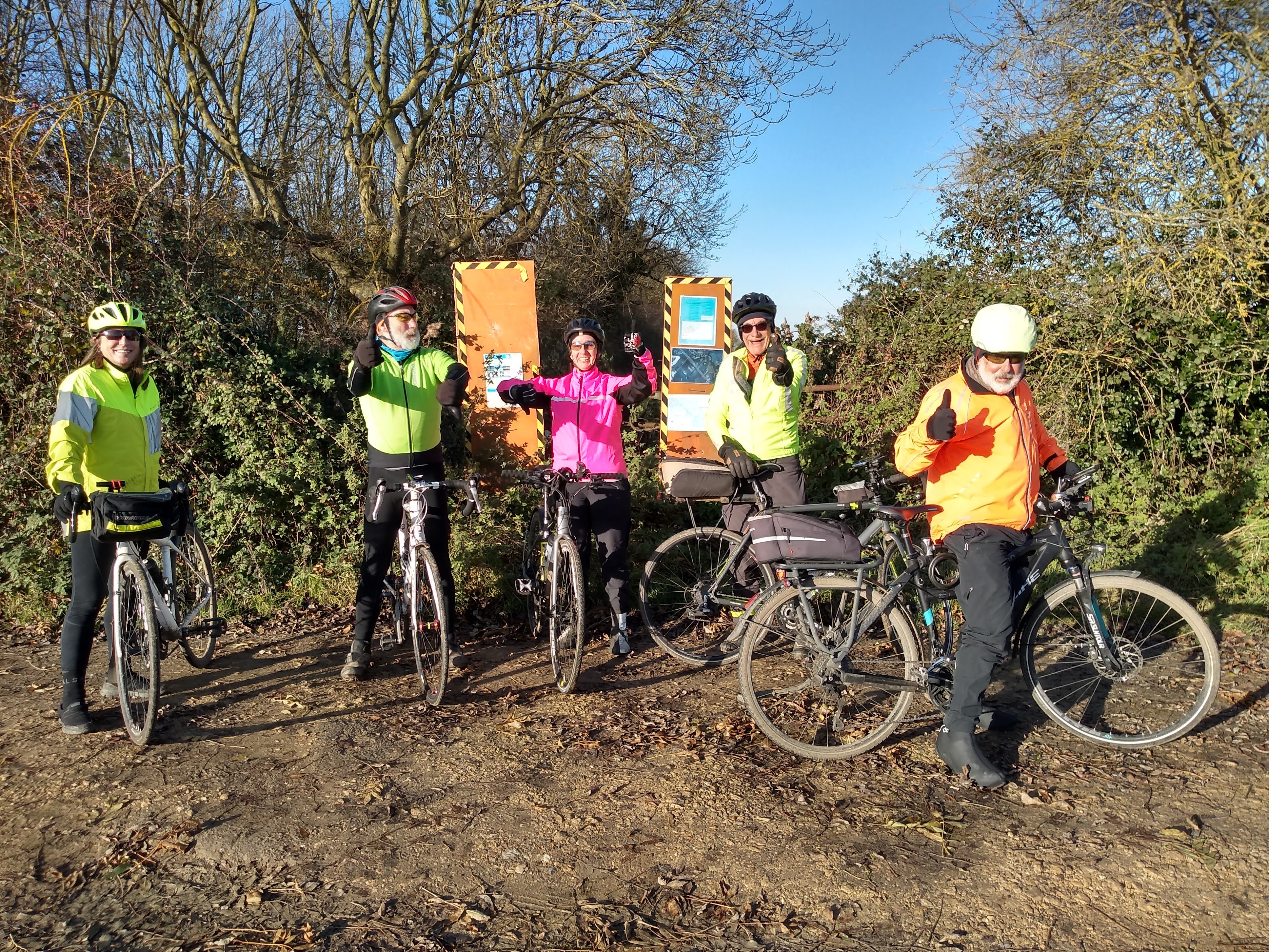 Not long afterwards, entering Bassingbourn, Group B encountered e-bikers Charles and Ken poring over digital displays trying to work out why Ken’s bike seemed not to be working properly. But a few more stabs of his display with a fat finger cured the problem and so Group B then comprised eight temporarily until they rejoined Group A who were waiting patiently for them near Shepreth.