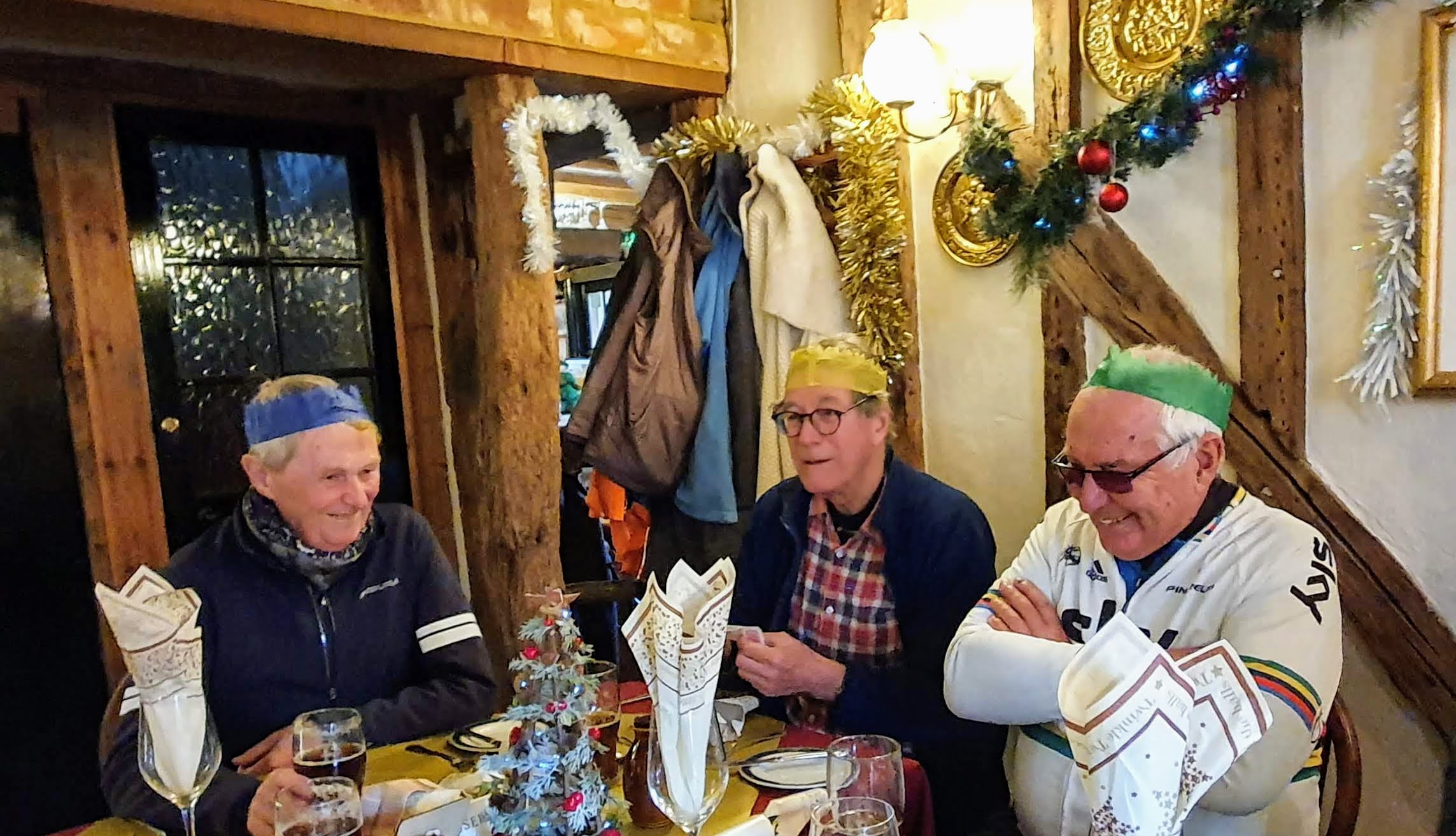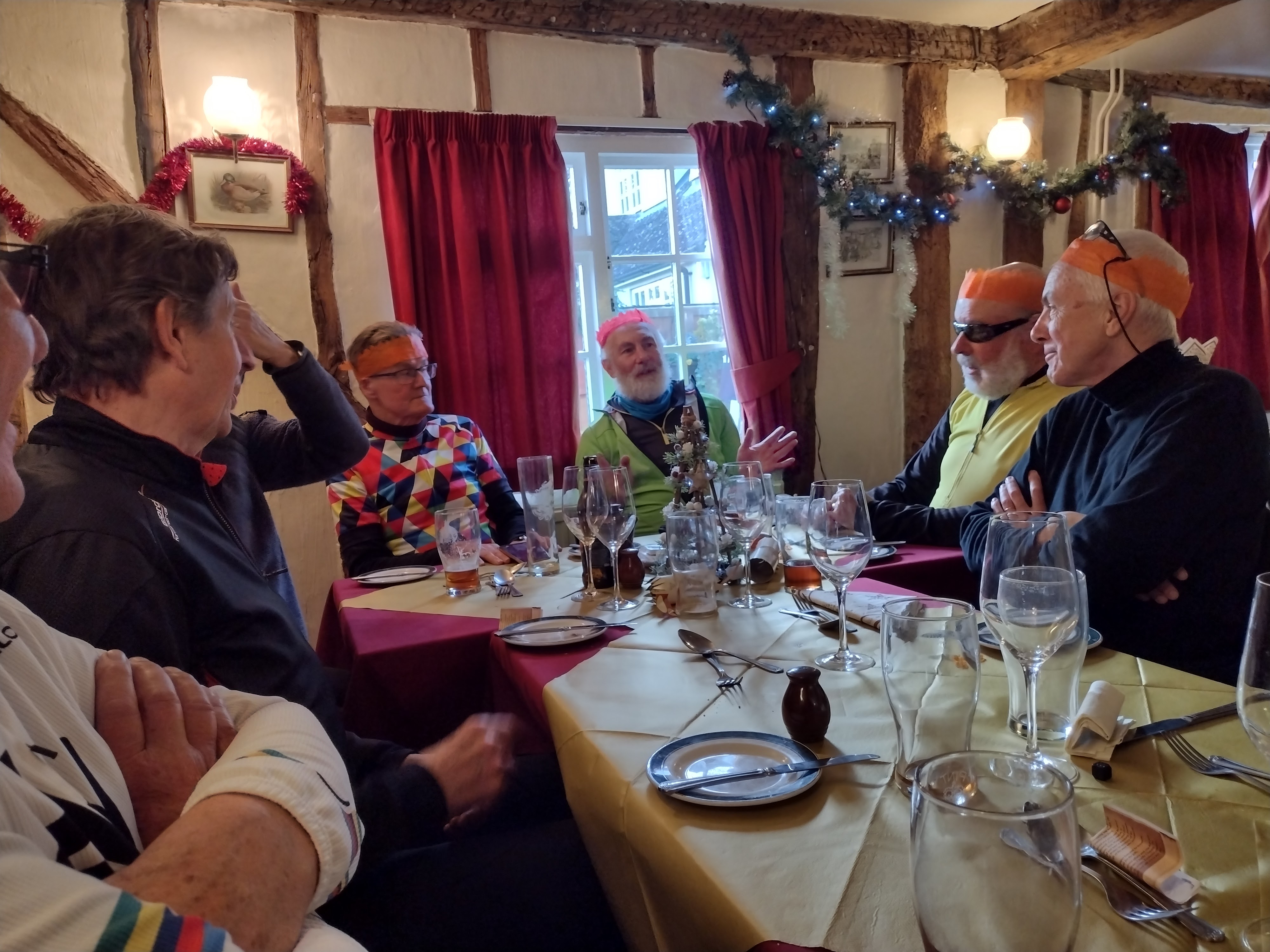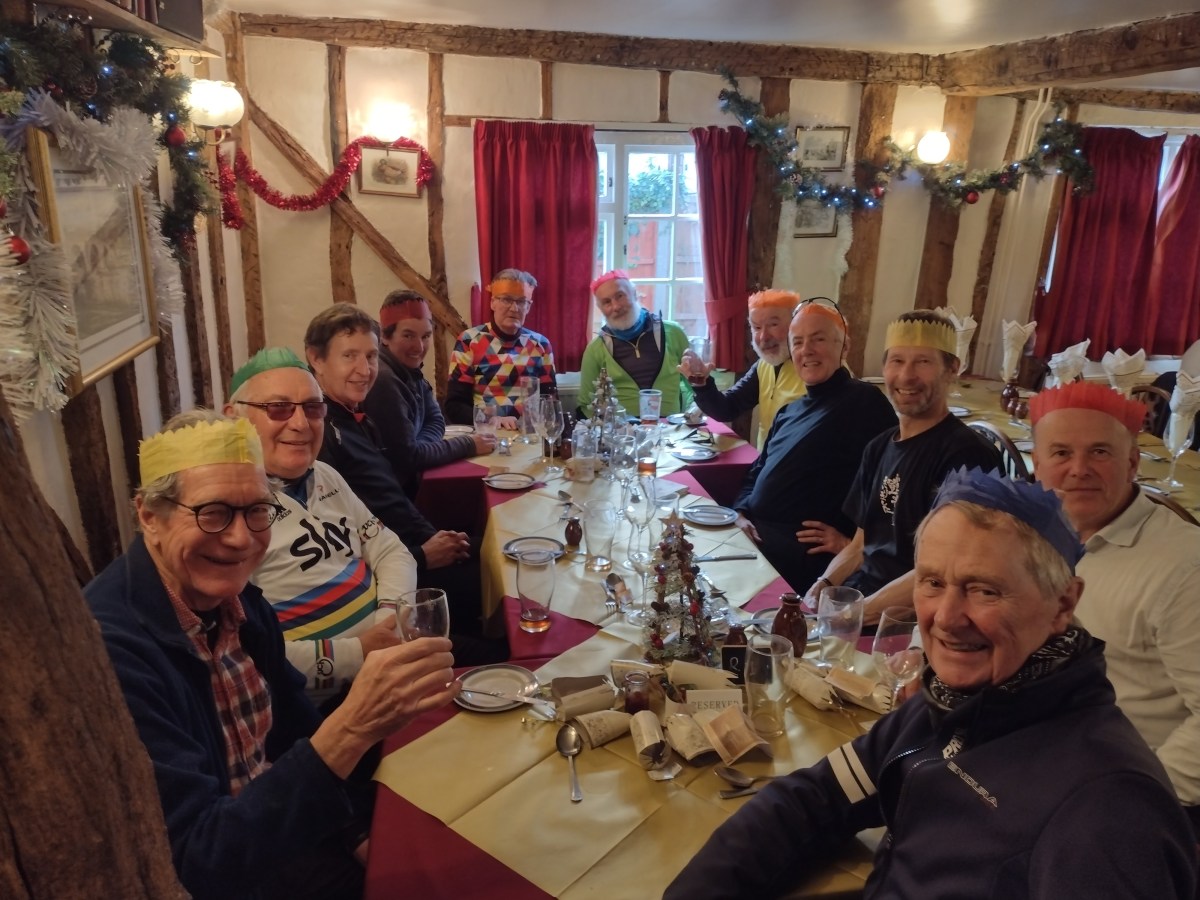 Christmas came early for Windmillers this year following Pat’s offer to cook us a turkey with all the trimmings at The Pig and Abbott in Abington Pigotts, and supply crackers too. What a tasty turkey it was too, for those who took advantage of her offer, and even those who didn’t still got the chance to pull a cracker, put on a hat and tell corny jokes. ‘What do you call a detective crossed with a skeleton? Sherlock Bones of course!’ As if we didn’t all know that one………………
