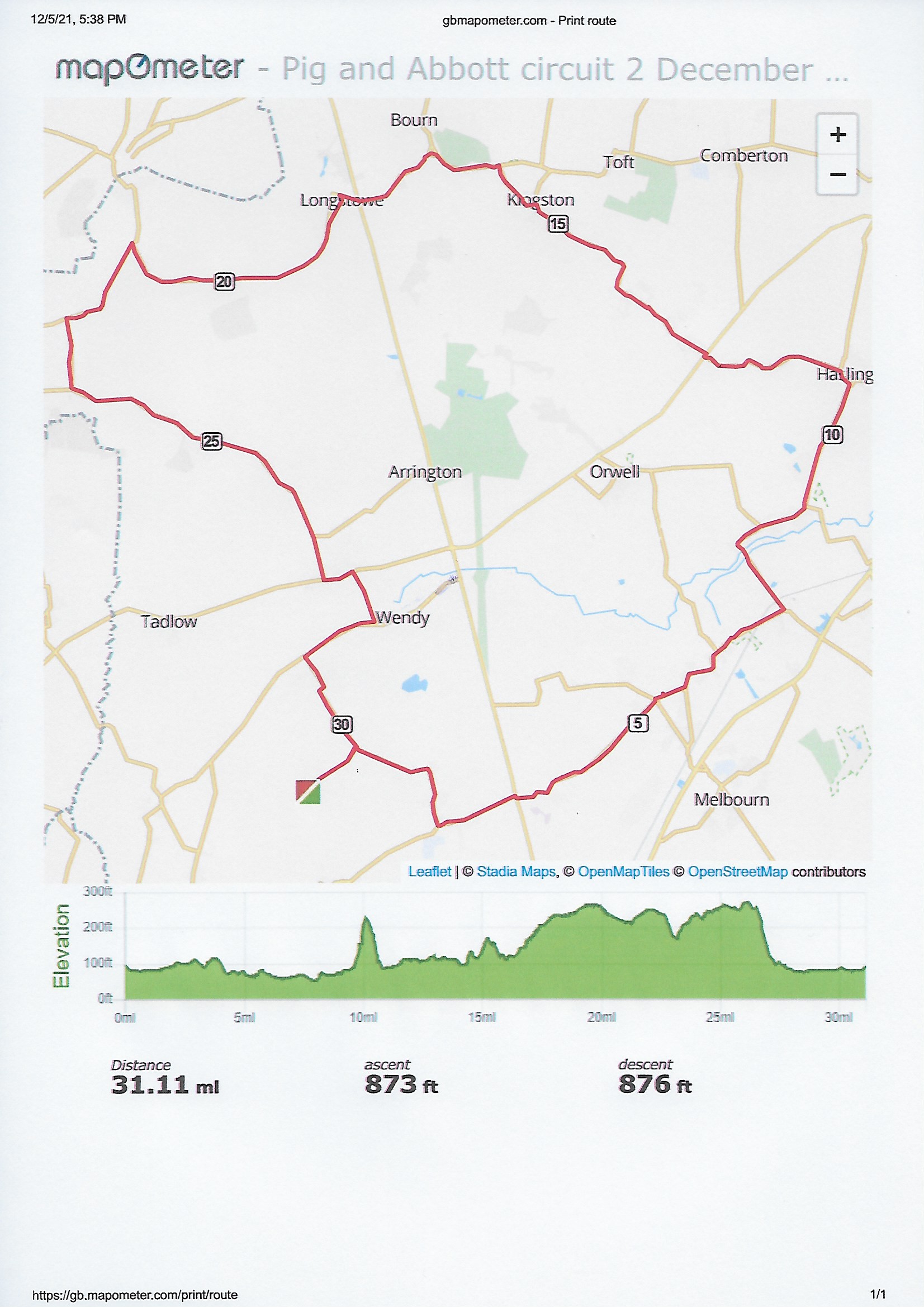 Gathering at 9.00am for a warm up coffee and to place lunch orders, 11 Windmillers set off on another chilly but sunny day on a pleasant circuit of South West Cambridgeshire, taking in Bassingbourn, Barrington, Haslingfield, Harlton, The Eversdens, Kingston, Bourn, Longstowe, Hatley St. George, Shingay and back to Abington Pigotts.