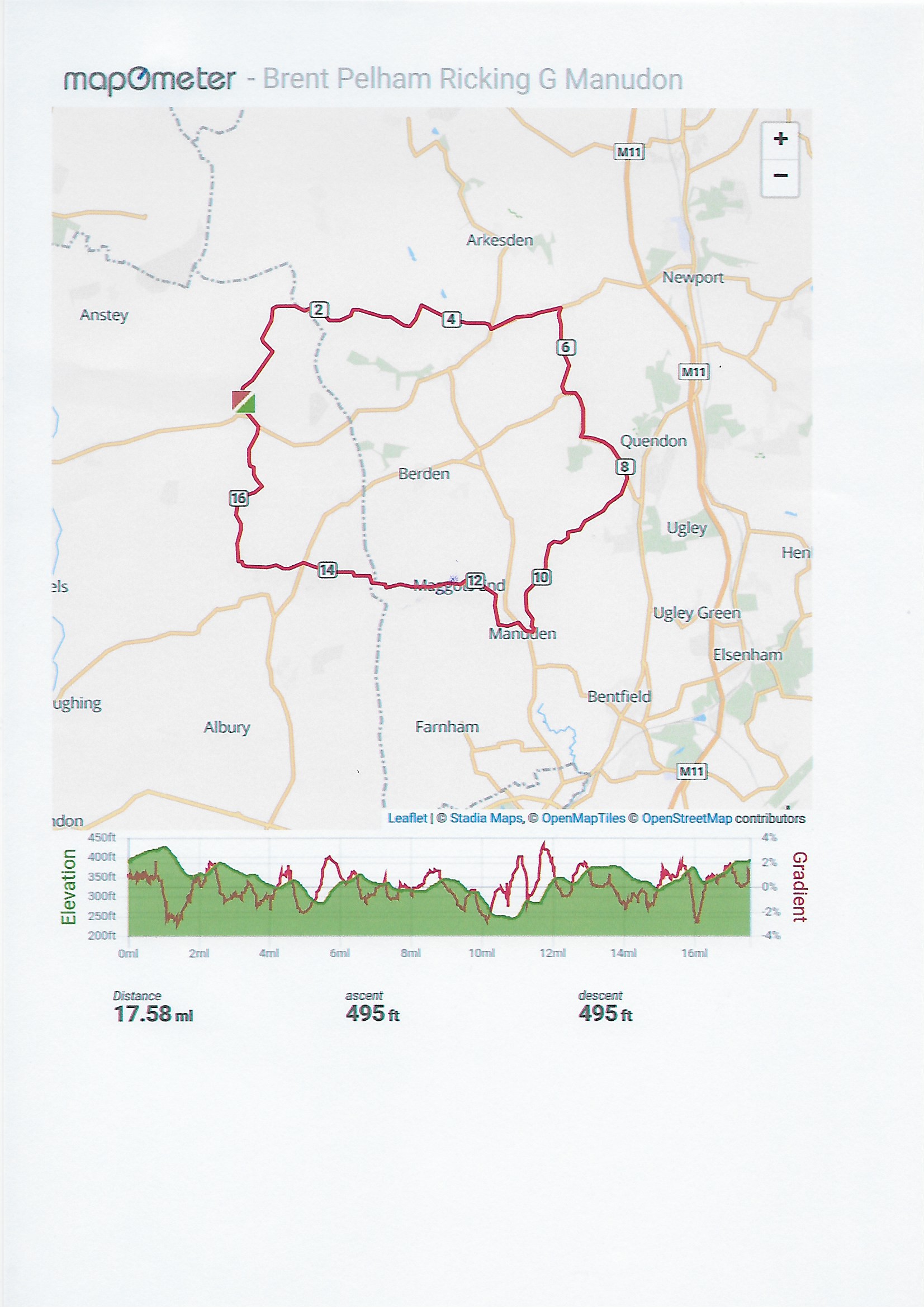 By the time we got to Manuden, the locals were warning us that we might not get through on the section of road between Maggots End and Furneux Pelham but, as it turned out, there were only a few puddles and so no need to raise legs in the air to traverse floods.