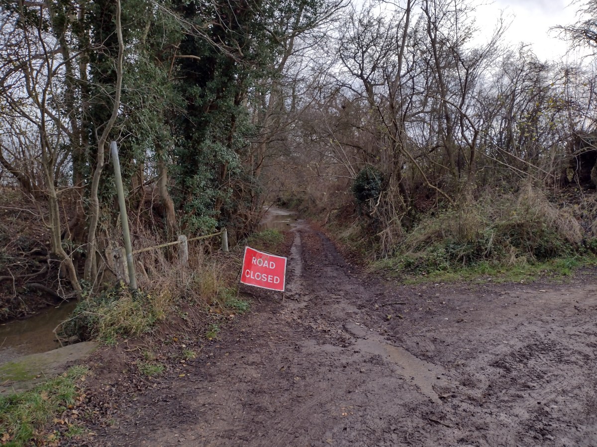No one in their right mind would attempt to cycle down the Southern end of Violet’s Lane between Brent Pelham and Furneux Pelham, even when it is open, although there was a photo of Graham being ankle deep in water in the same vicinity recently, albeit on his mountain bike. Claimed to be the longest ford in the UK (1km) it is thick with mud even when dry, which is not very often as it is actually the course of the River Ash.