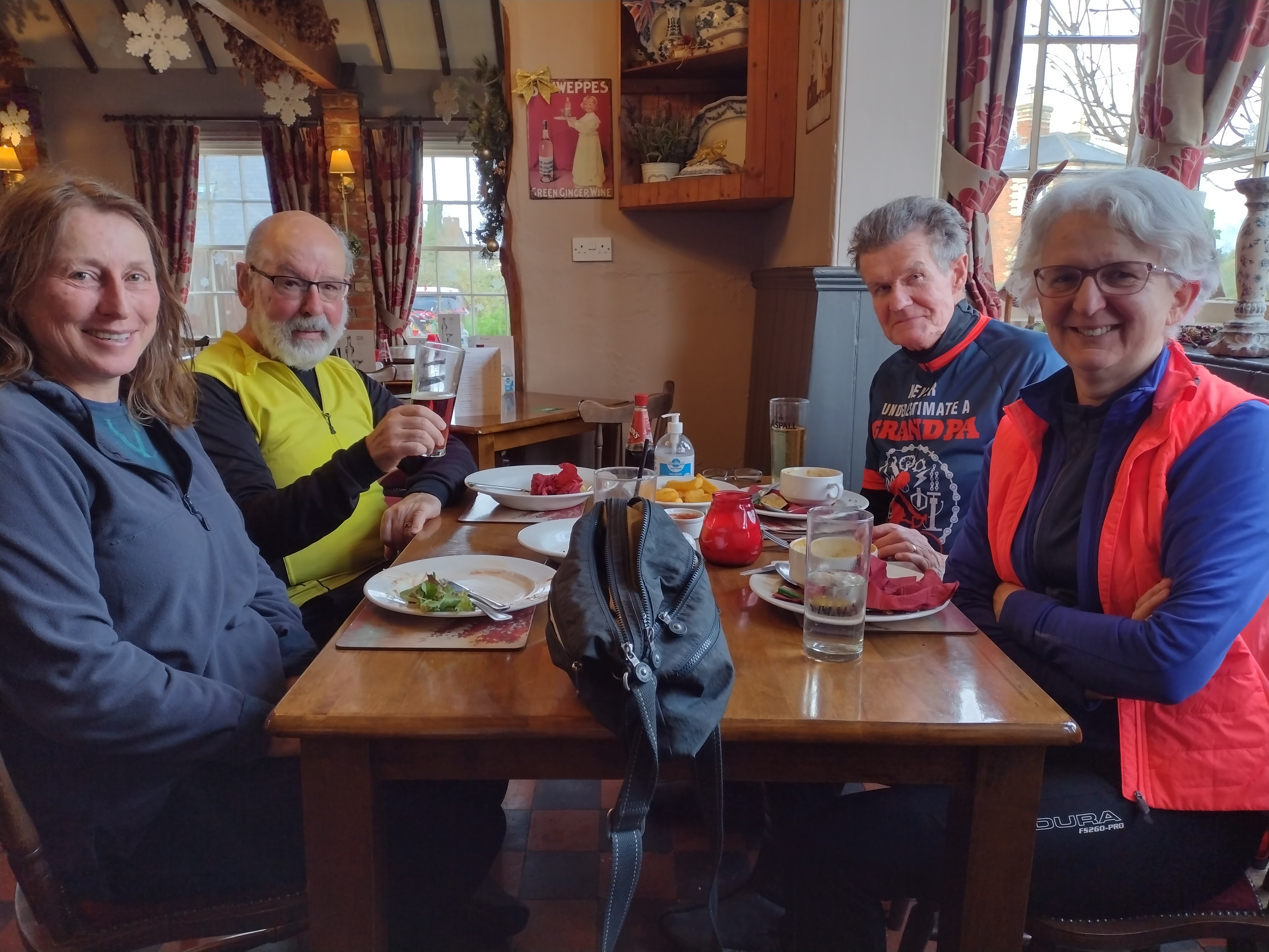 Brian peeled off in Bartlow to head back for a lunch appointment and Andrew also couldn’t make lunch, leaving 8 Windmillers to enjoy another excellent meal at The Chestnut Tree, washed down with great beers and softdrinks.