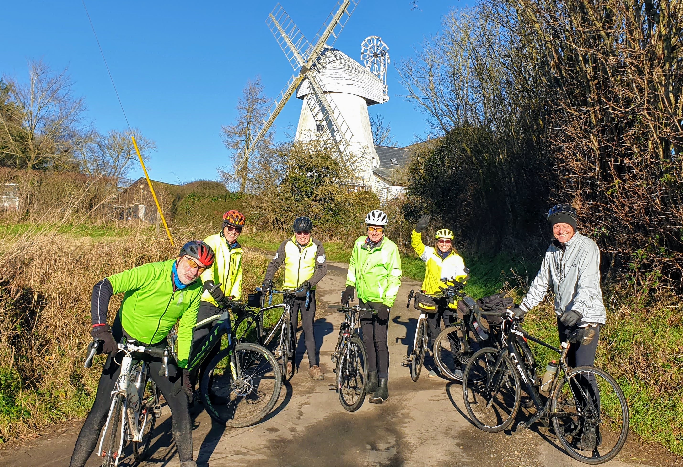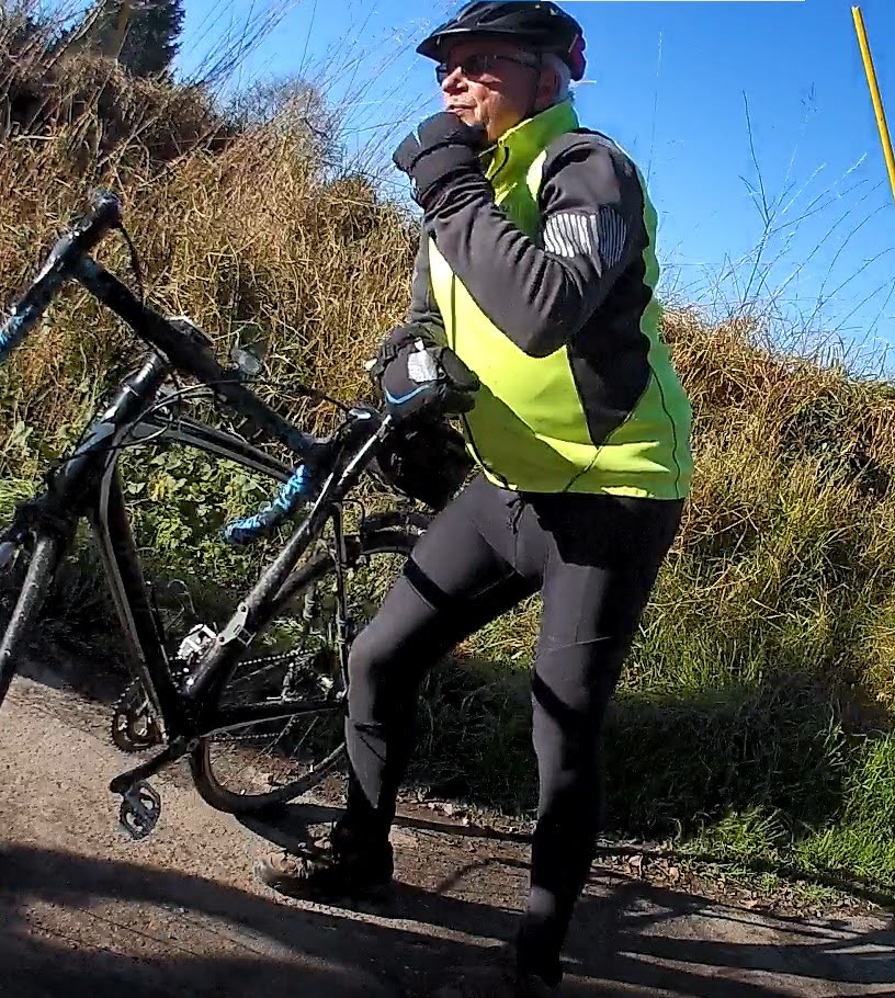 So it was that eleven Windmillers set off from the pub, in some trepidation it must be said, given the mercury was barely above freezing and, to heighten our concern, within half a mile we encountered Graham coming the other way. Cycling out to join us, had been delayed by the icy roads. Oo-er, let’s take it steady, was the general consensus.